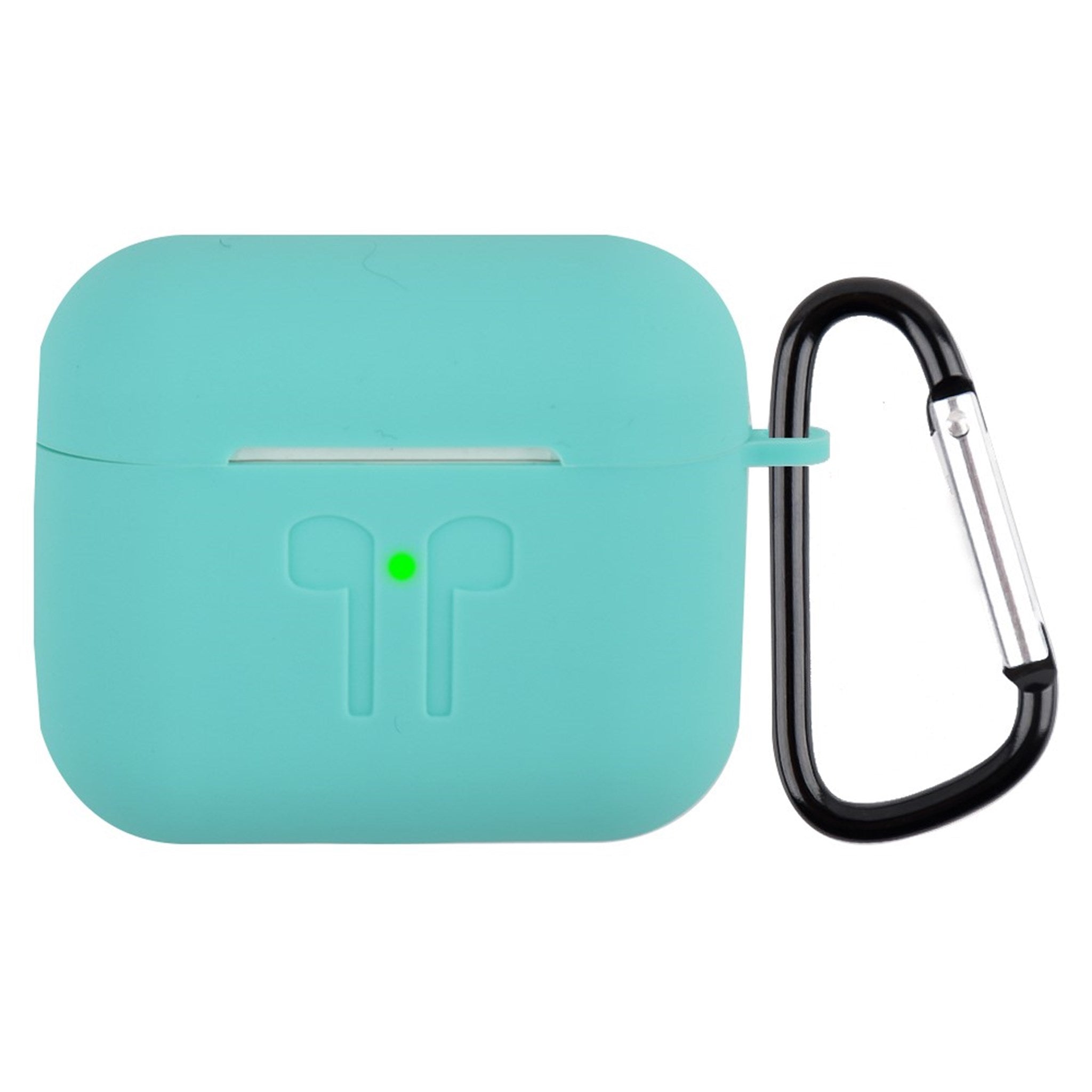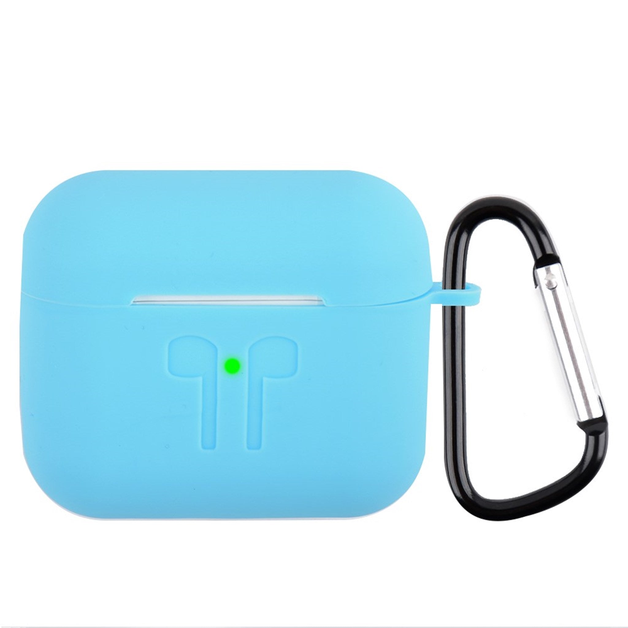 Étui en silicone pour AirPods avec mousqueton - Cyan