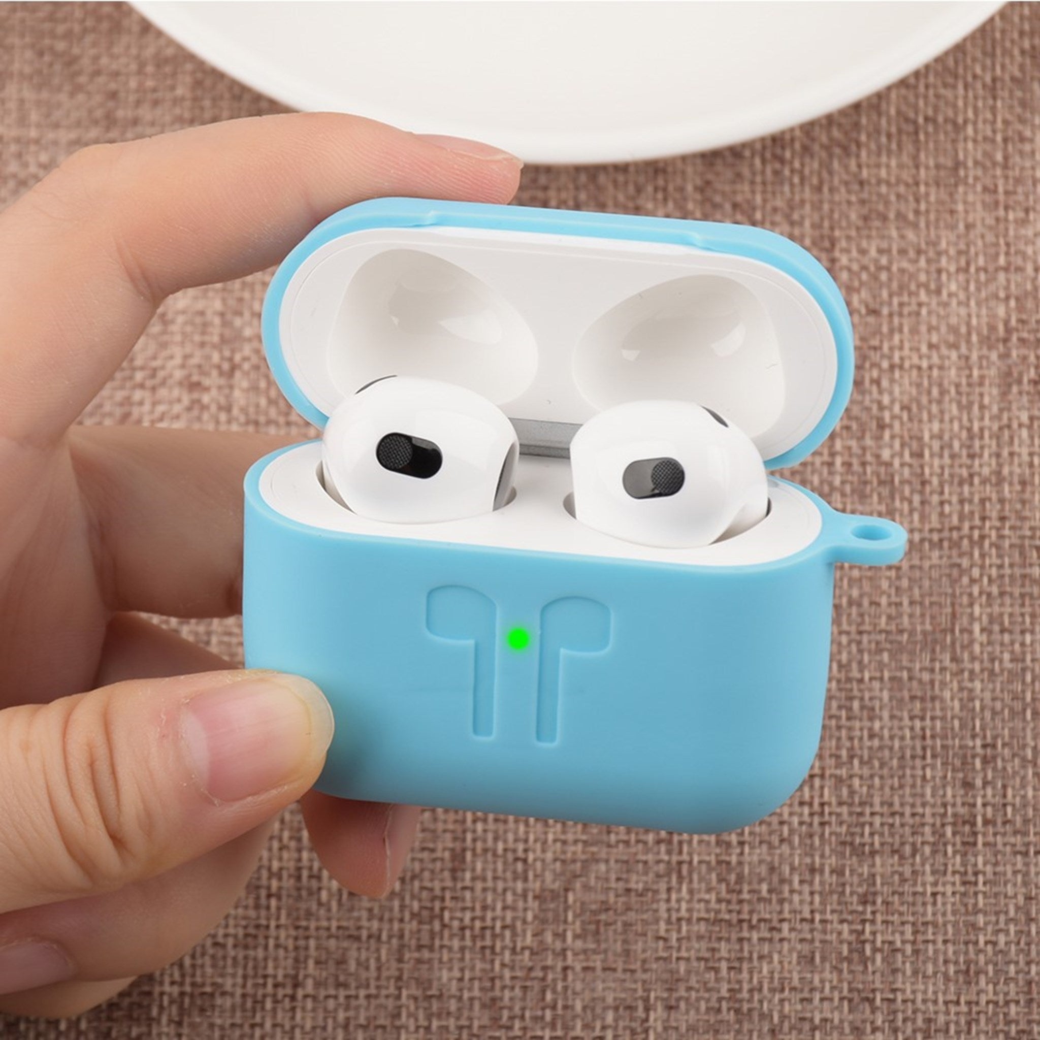 Étui en silicone gravé design AirPods 3 avec mousqueton - Bleu Ciel