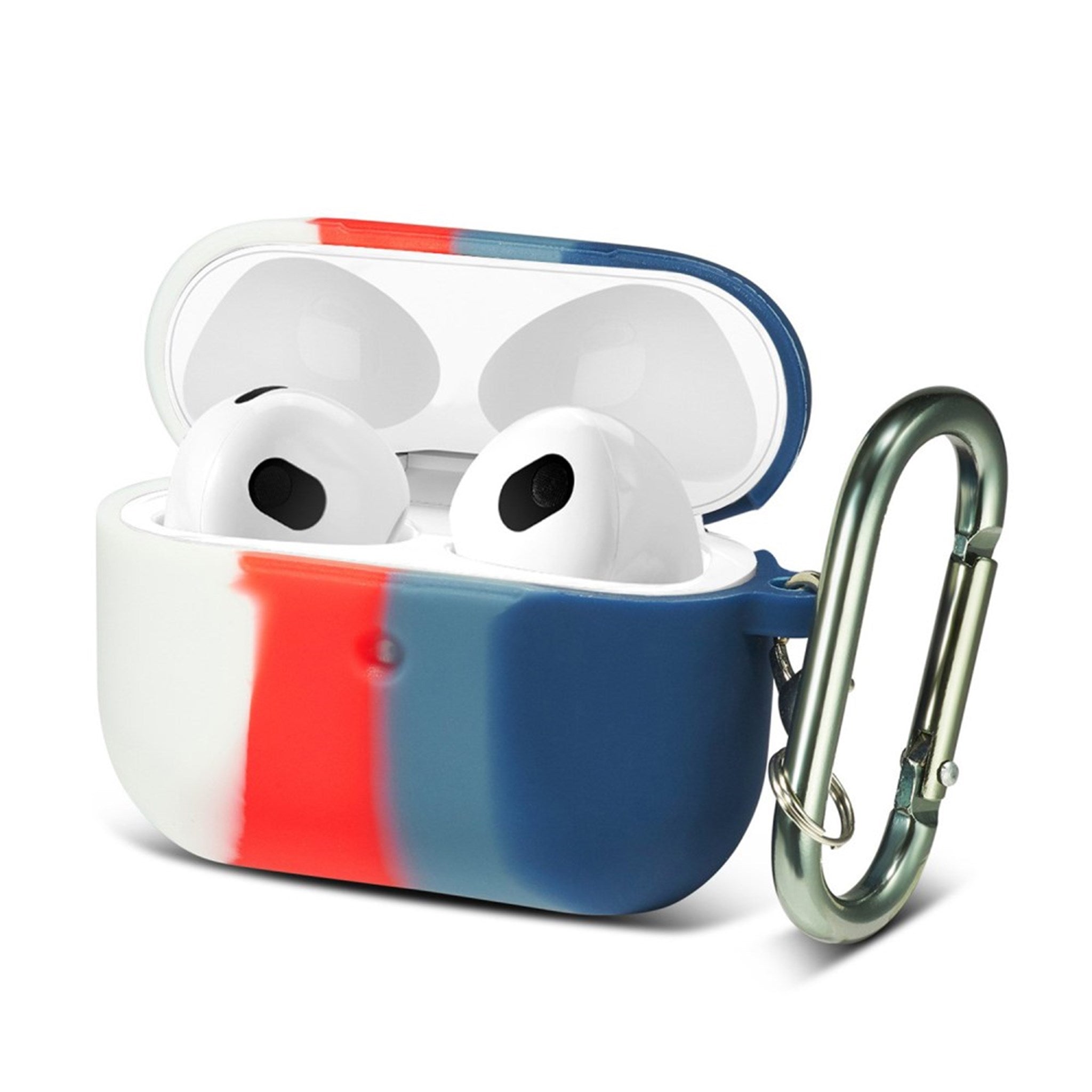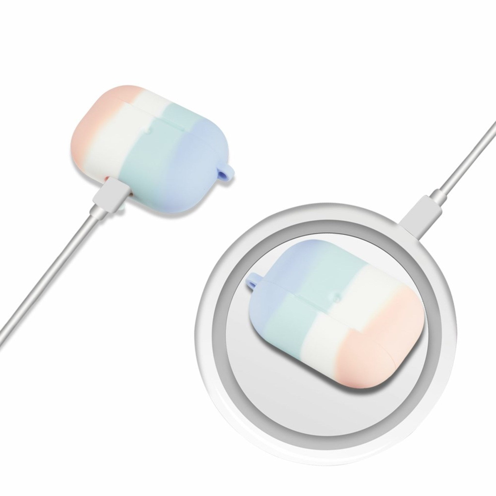 AirPods 3 étui en silicone dégradé arc-en-ciel avec mousqueton - Blanc / Bleu