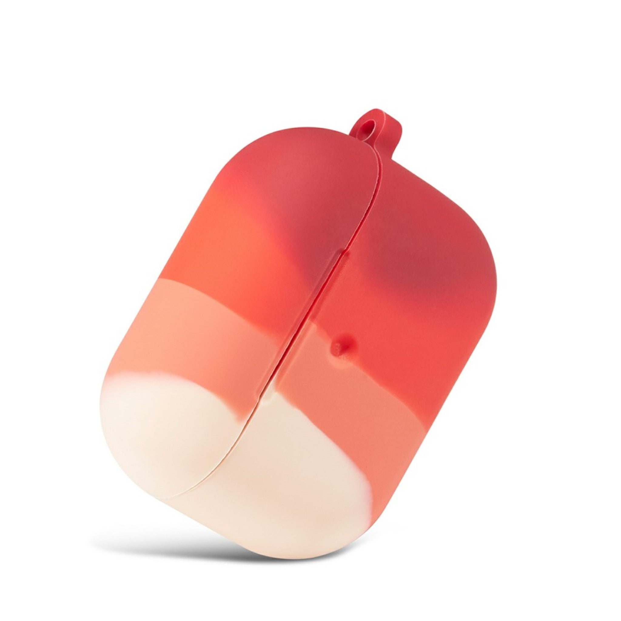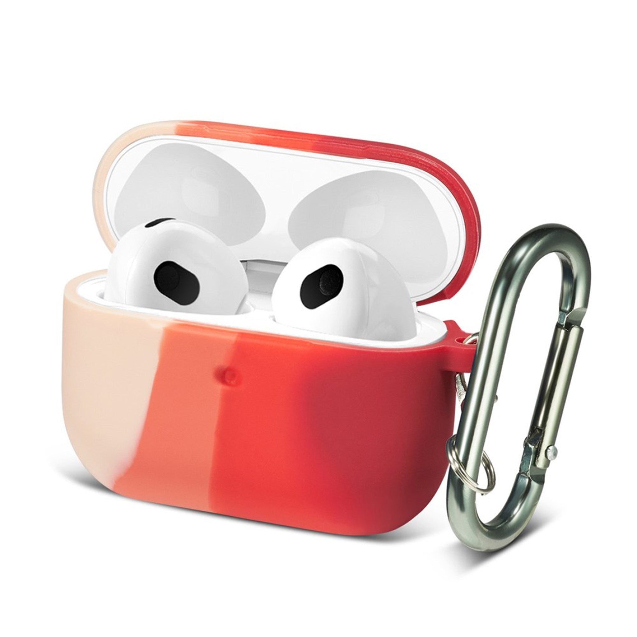 AirPods 3 étui en silicone dégradé arc-en-ciel avec mousqueton - Rouge Foncé / Blanc