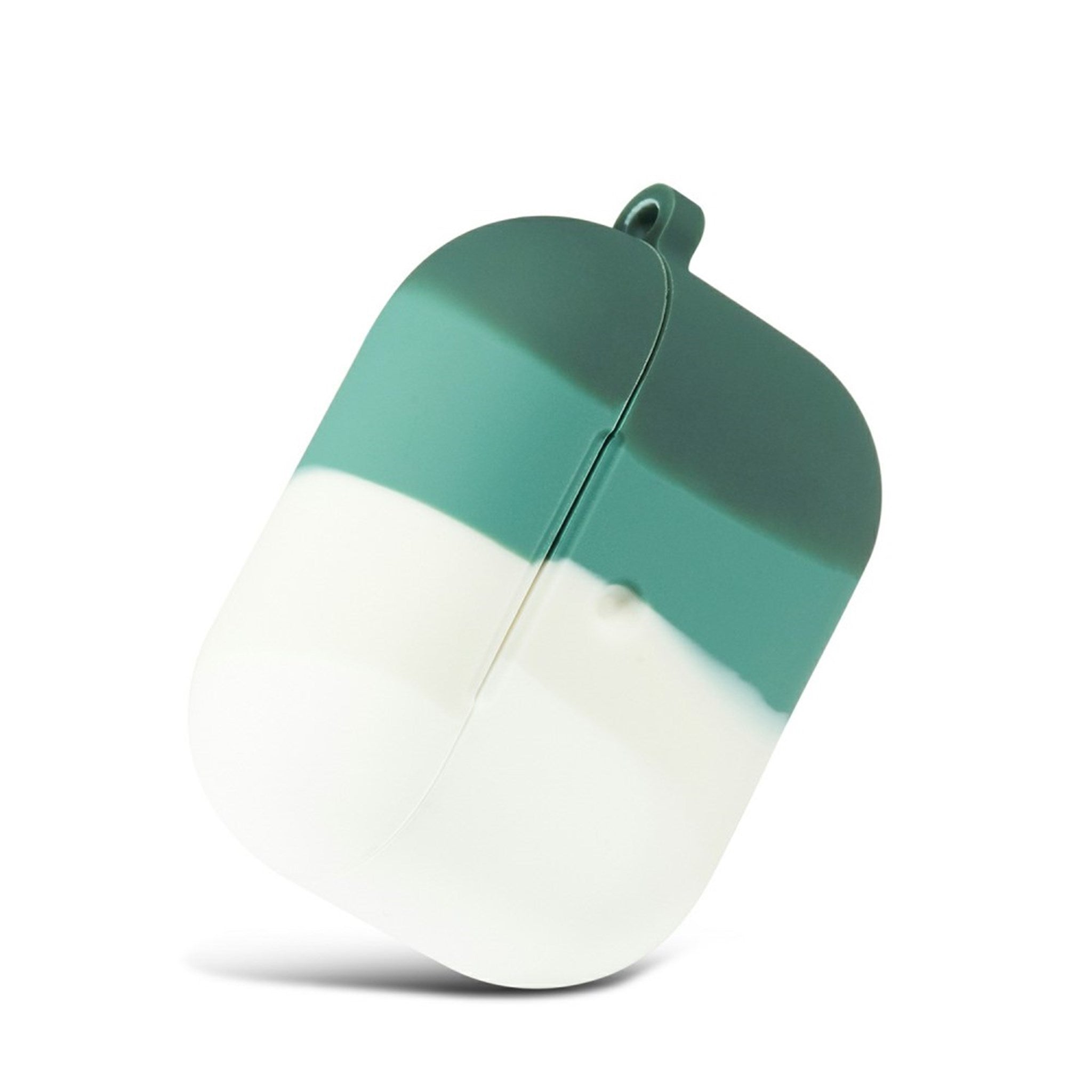 AirPods 3 étui en silicone dégradé arc-en-ciel avec mousqueton - Blanc / Vert Foncé