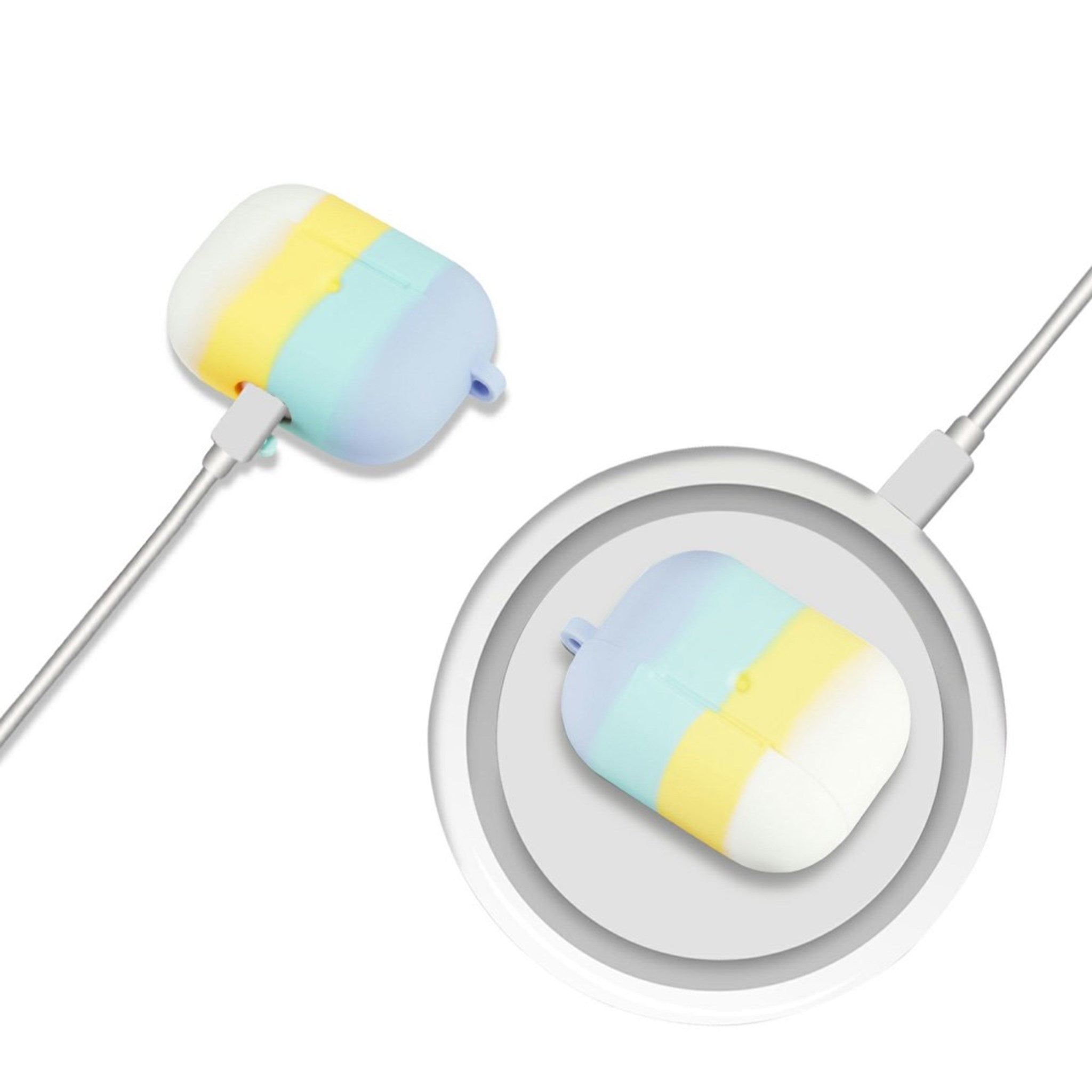 AirPods 3 étui en silicone dégradé arc-en-ciel avec mousqueton - Beige / Cyan