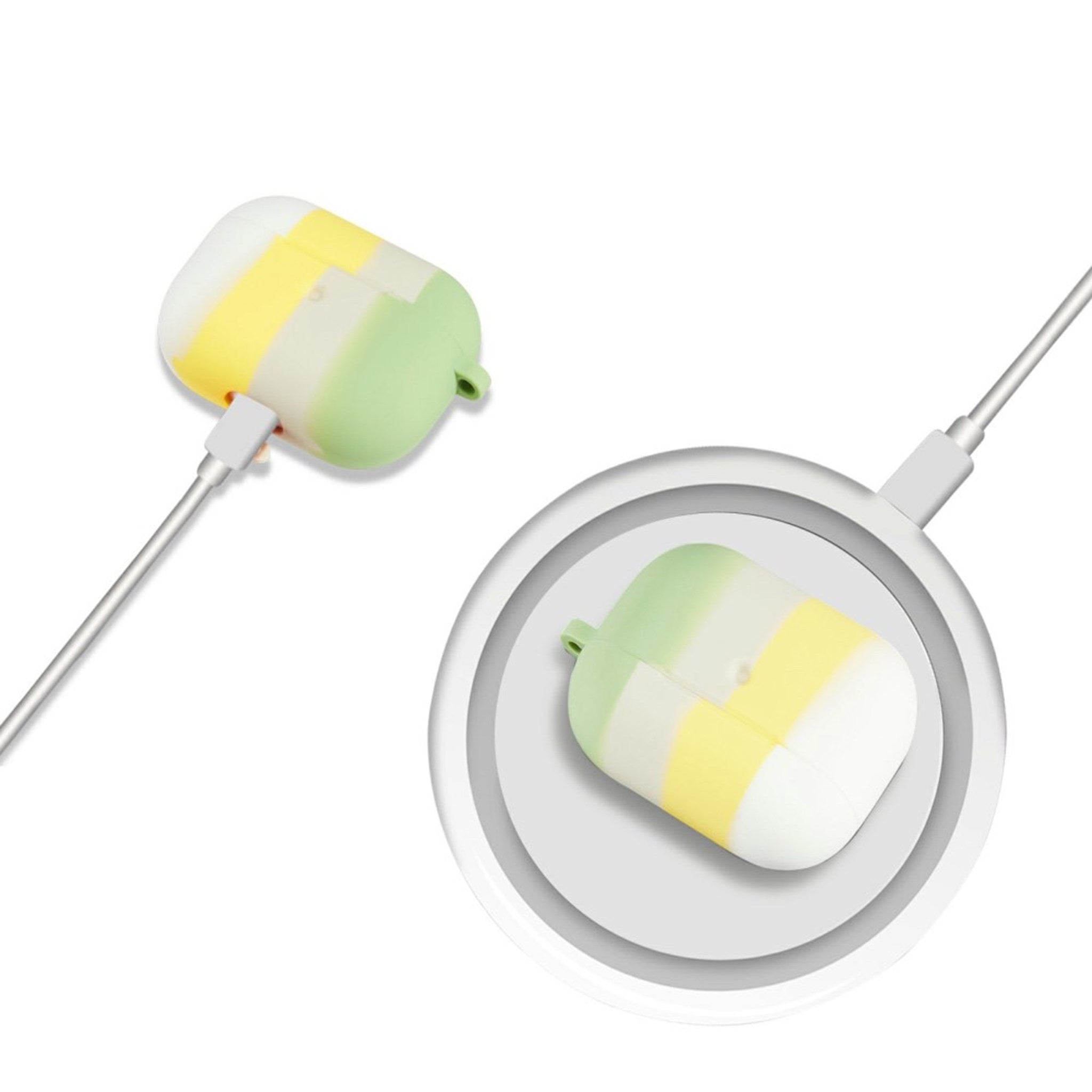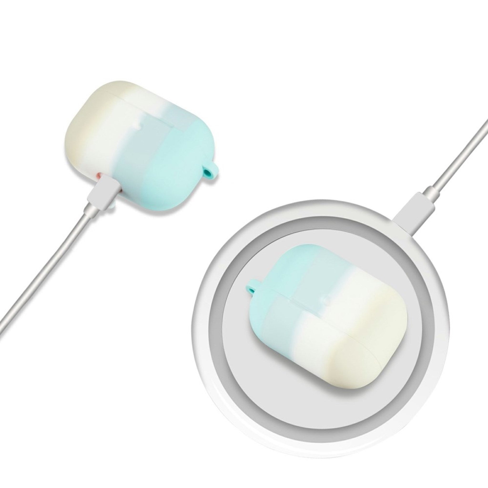 AirPods 3 étui en silicone dégradé arc-en-ciel avec mousqueton - Blanc / Vert Clair