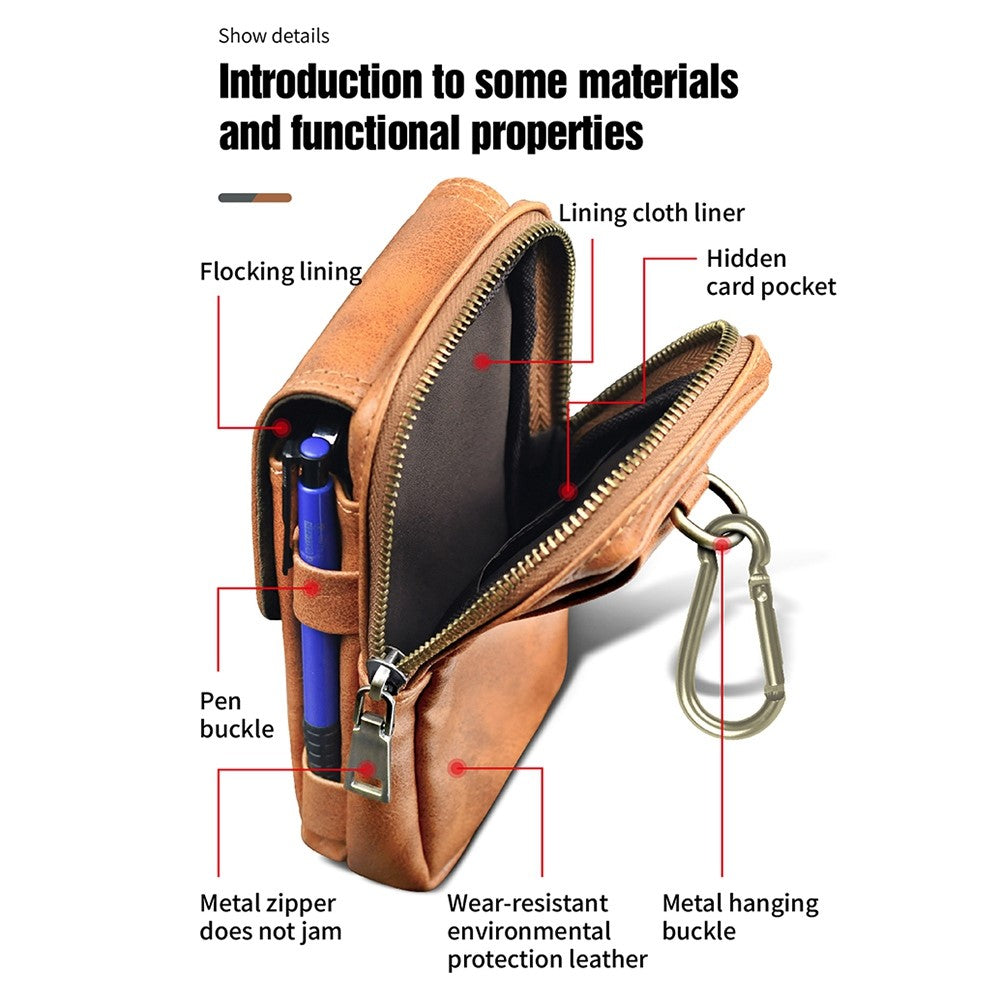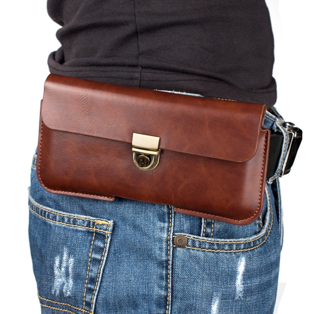 Sac de taille universel en cuir avec fente pour cartes - Marron Taille : L