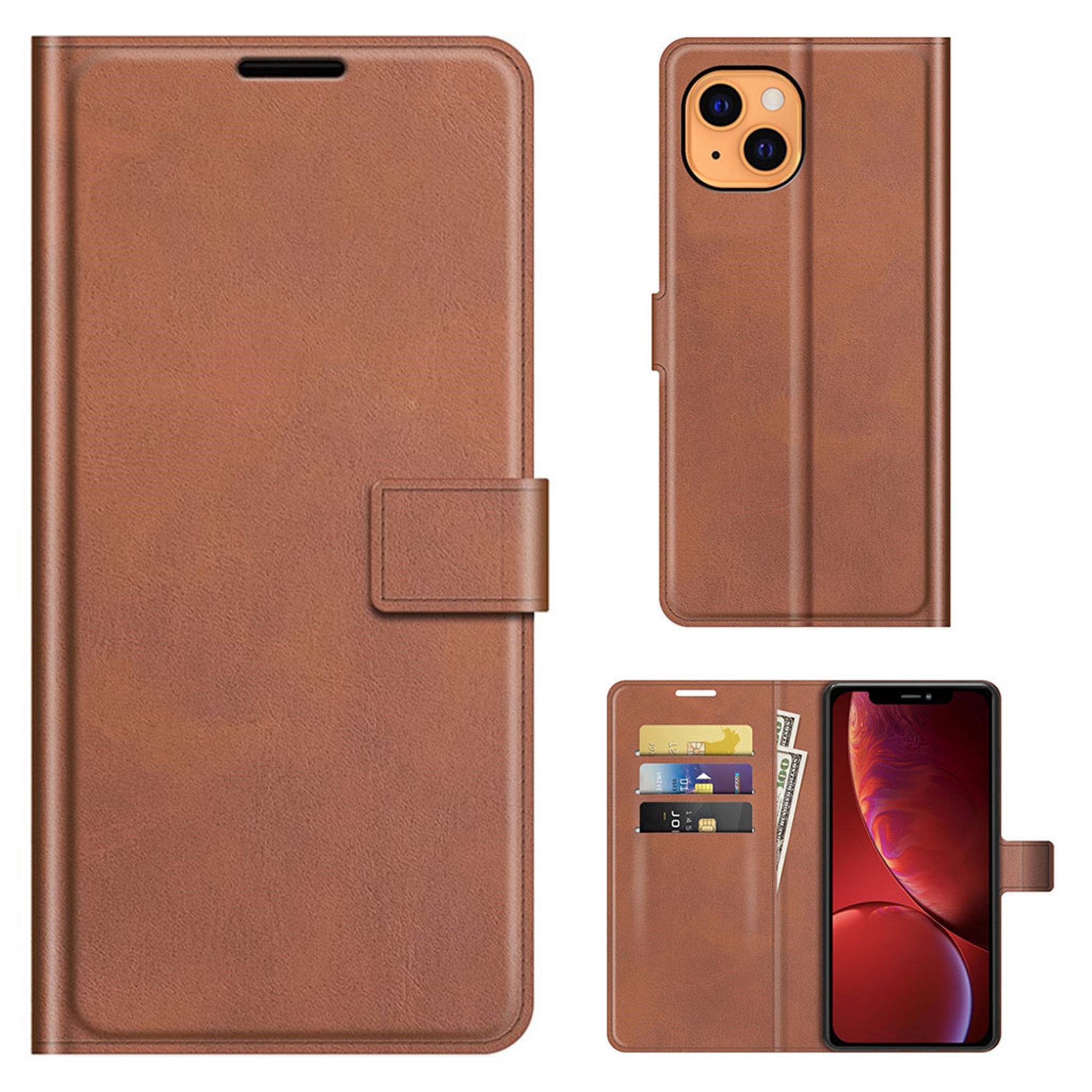 Étui en cuir de type portefeuille pour iPhone 13 - Marron