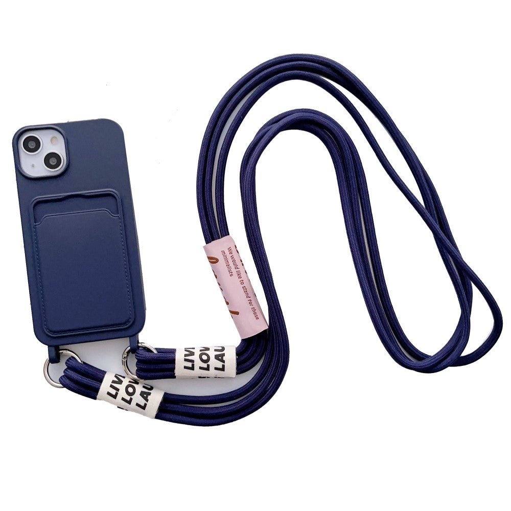 Coque en silicone liquide pour iPhone 15 Plus avec fente pour carte et sangle - Violet