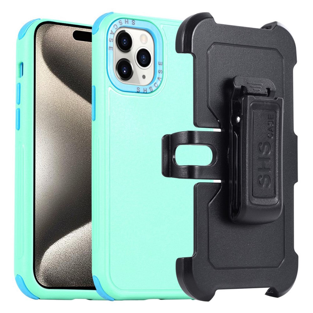 Étui à clip ceinture double couche pour iPhone 15 Plus - Tout Noir