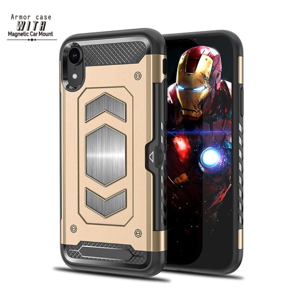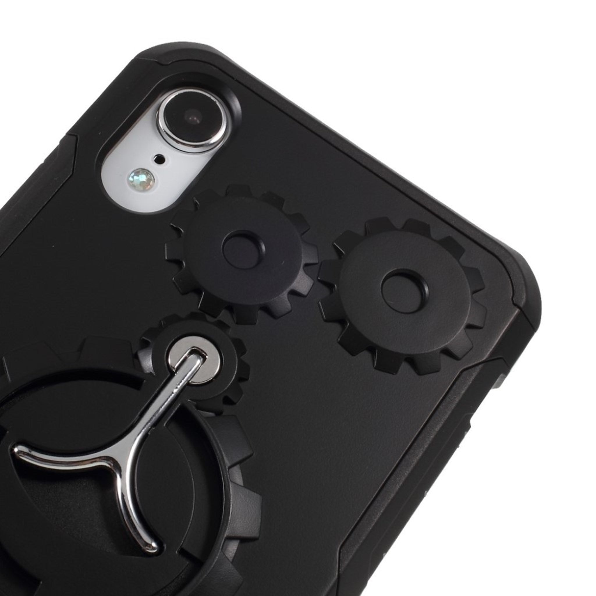 Coque hybride iPhone Xr mechanical gear kickstand - Noir