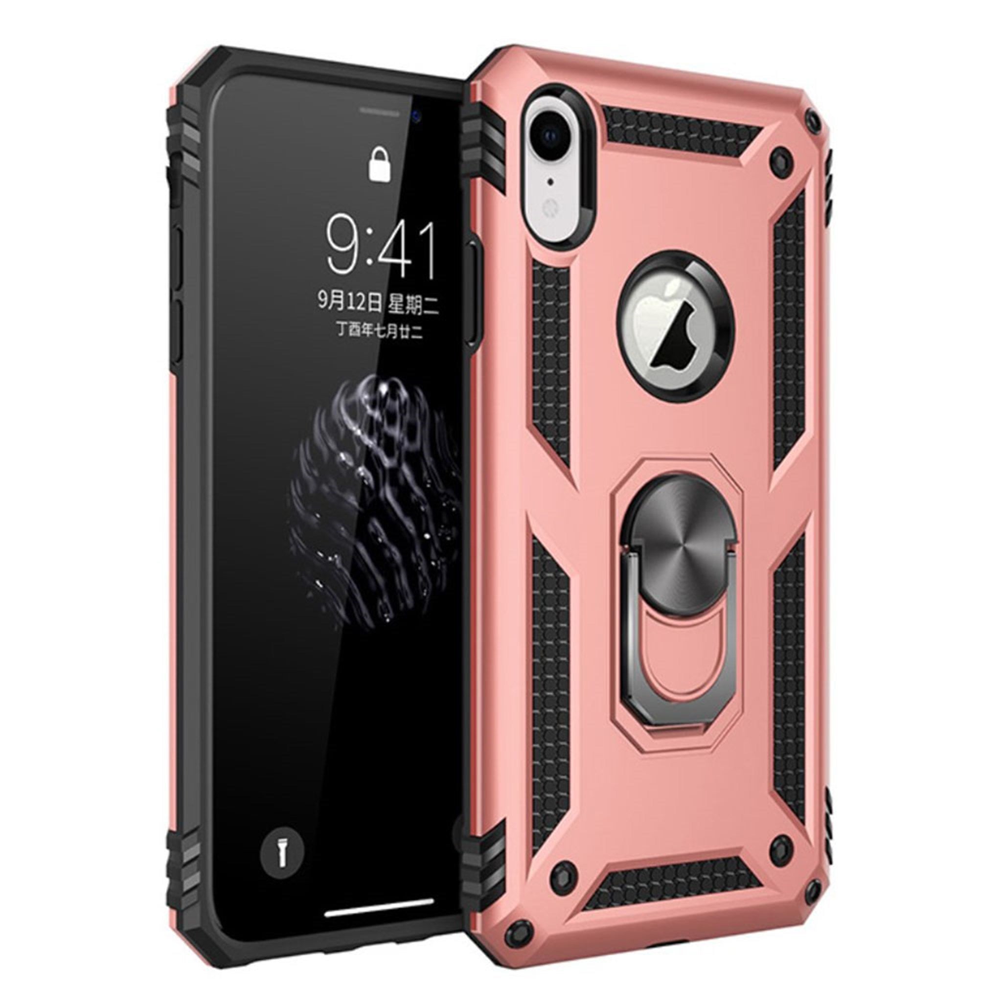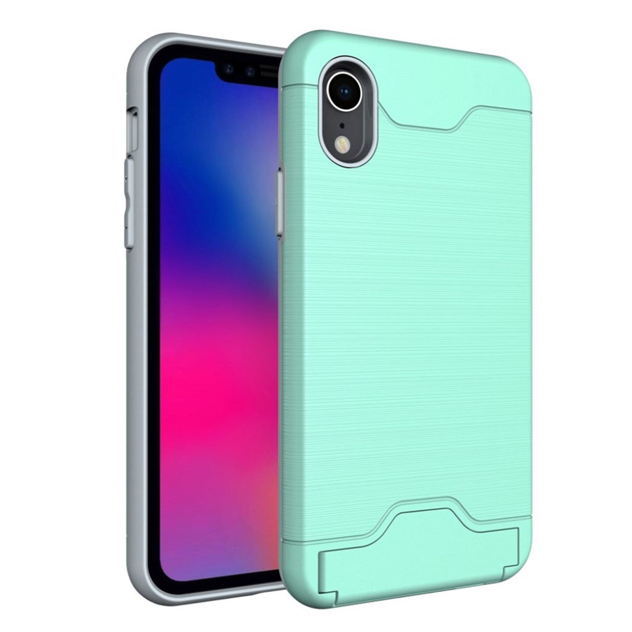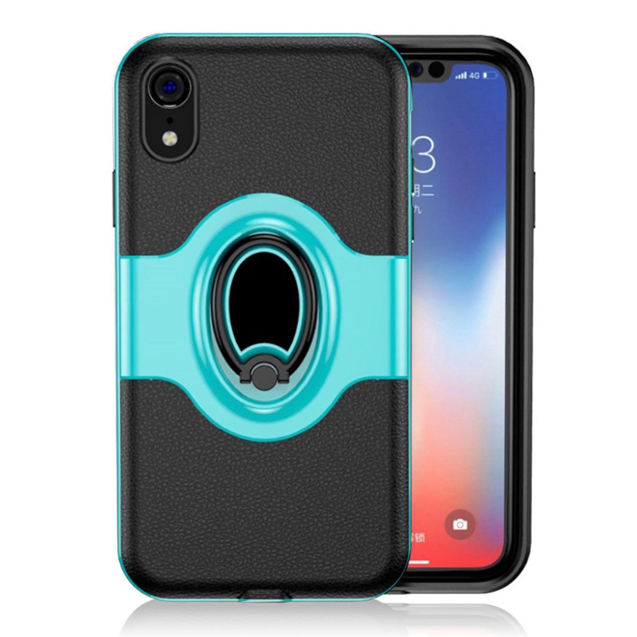 Étui hybride pour iPhone Xr avec support d'anneau - Cyan