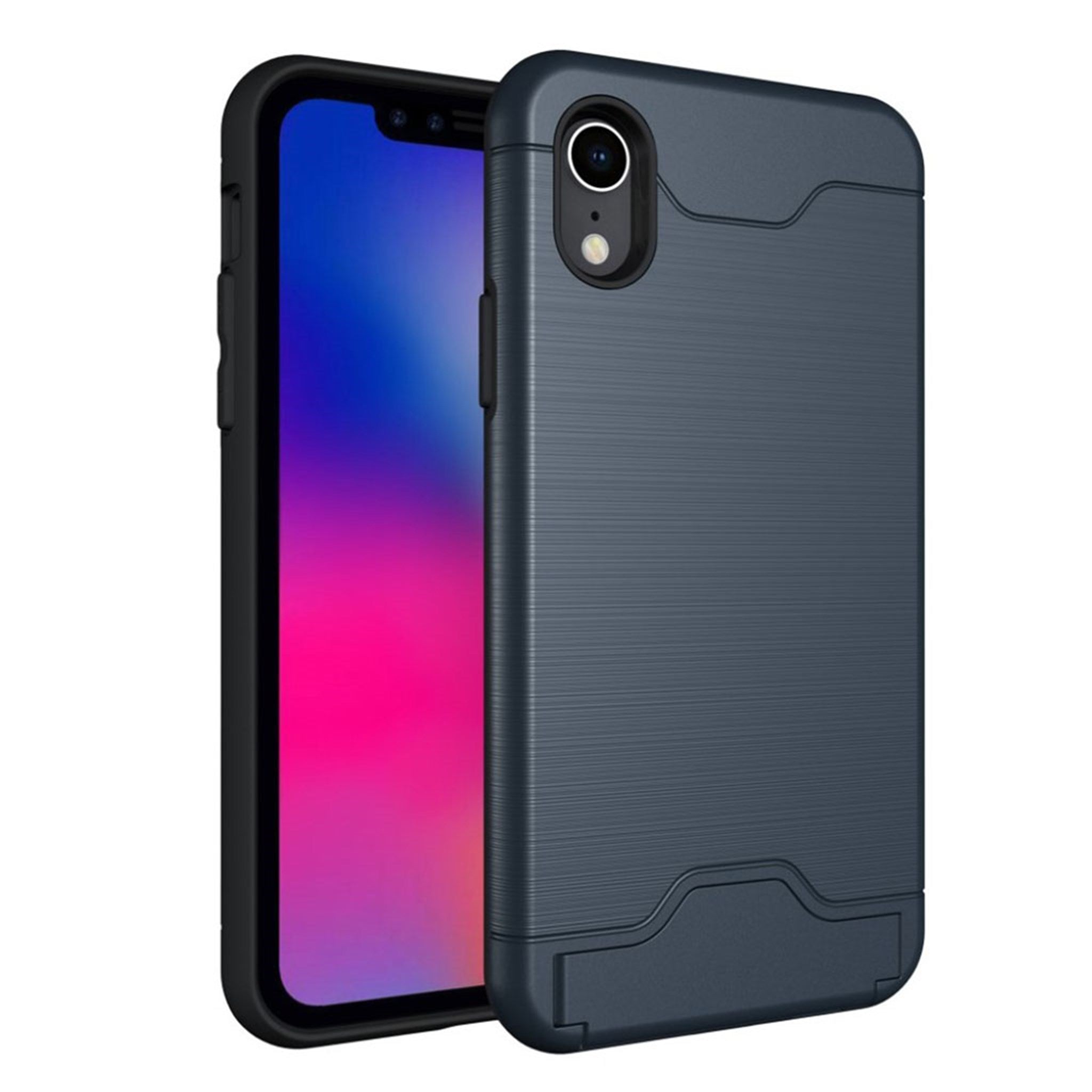 iPhone 9 beskyttelses deksel av hybrid materiale med børstet tekstur - Mørke Blå