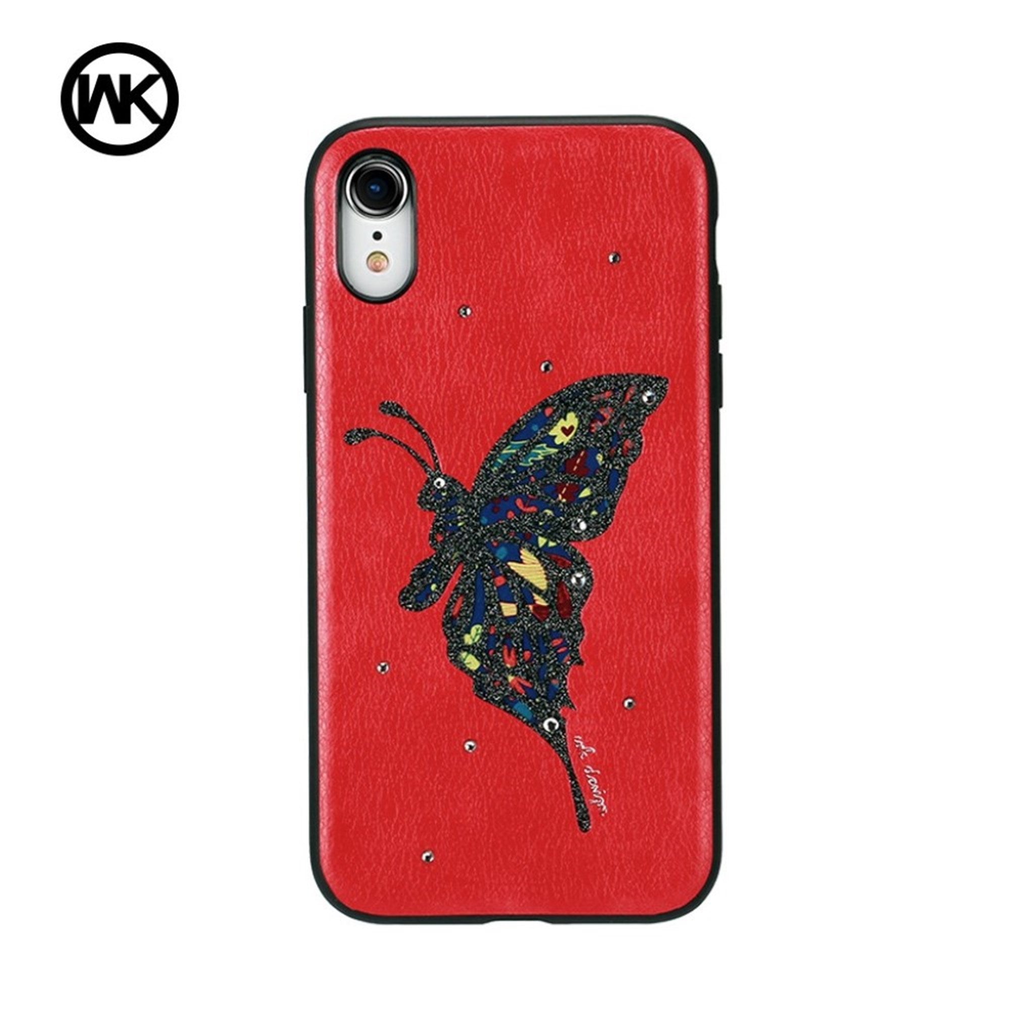 Étui hybride en cuir à motif papillon WK pour iPhone Xr - Rouge