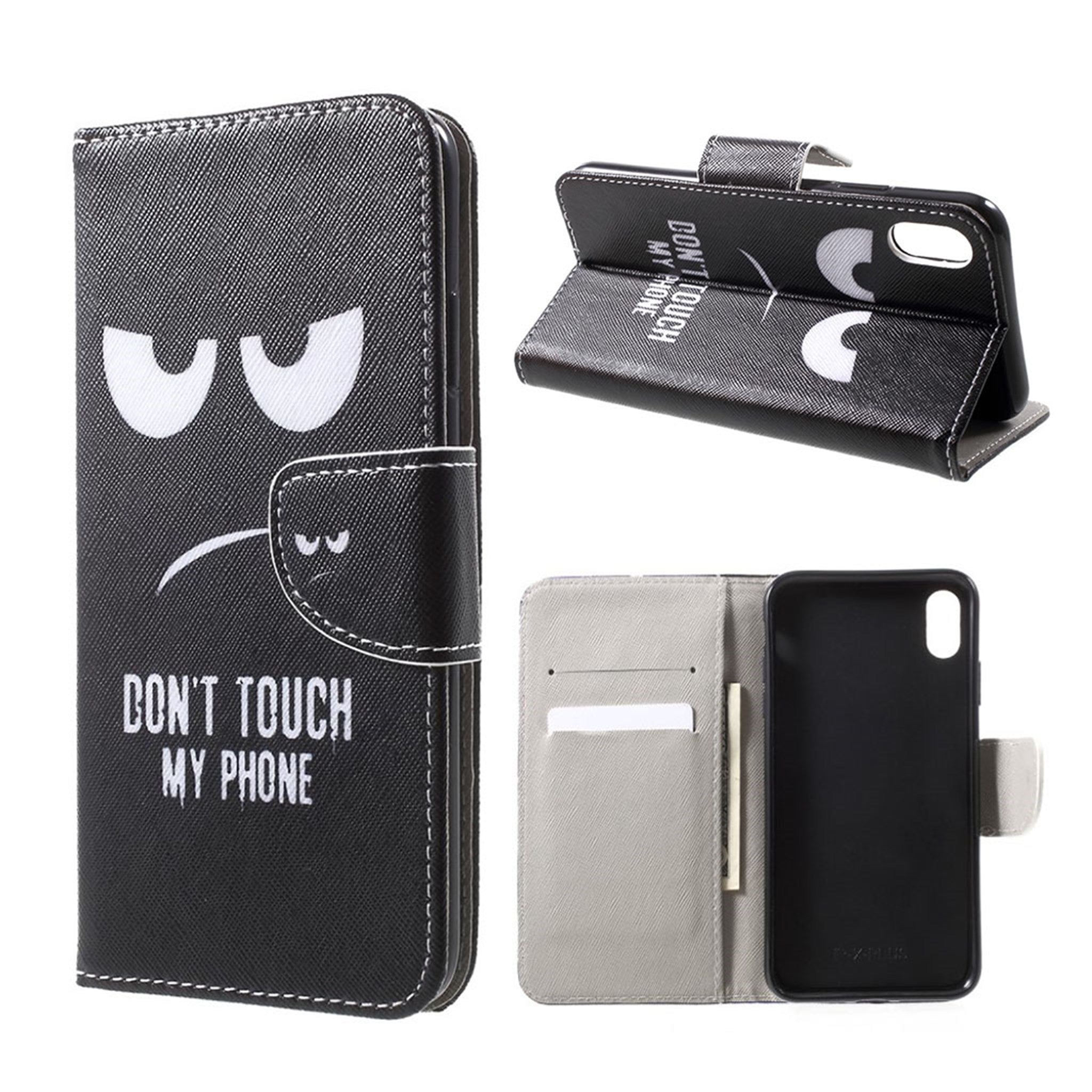 Coque à rabat en cuir avec impression de motifs pour iPhone Xr - Ne Touche Pas À Mon Téléphone