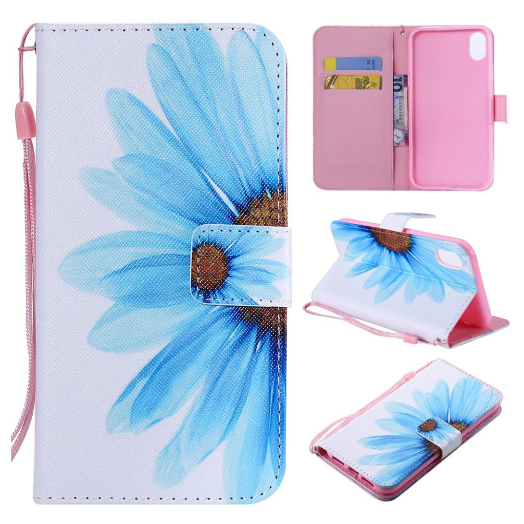 Coque à rabat en cuir à motif tache lumineuse pour iPhone Xr - Fleur Bleue