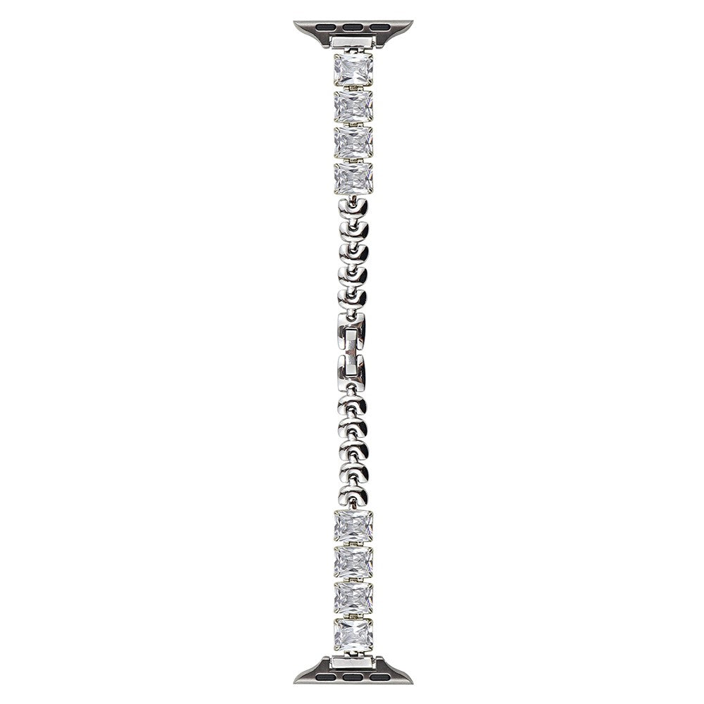 Bracelet chaîne en cuivre Apple Watch Series 41mm - 40mm - 38mm Square Rhinestone Watch Band - Silver