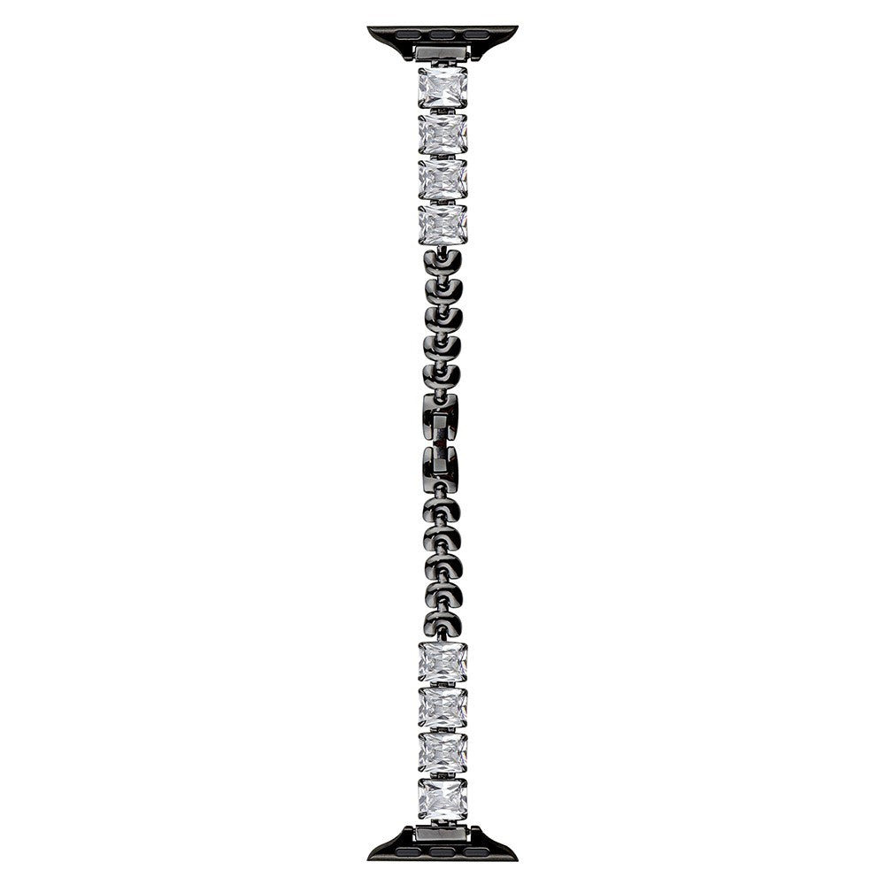 Bracelet chaîne en cuivre Apple Watch Series 41mm - 40mm - 38mm Square Rhinestone Watch Band - Noir