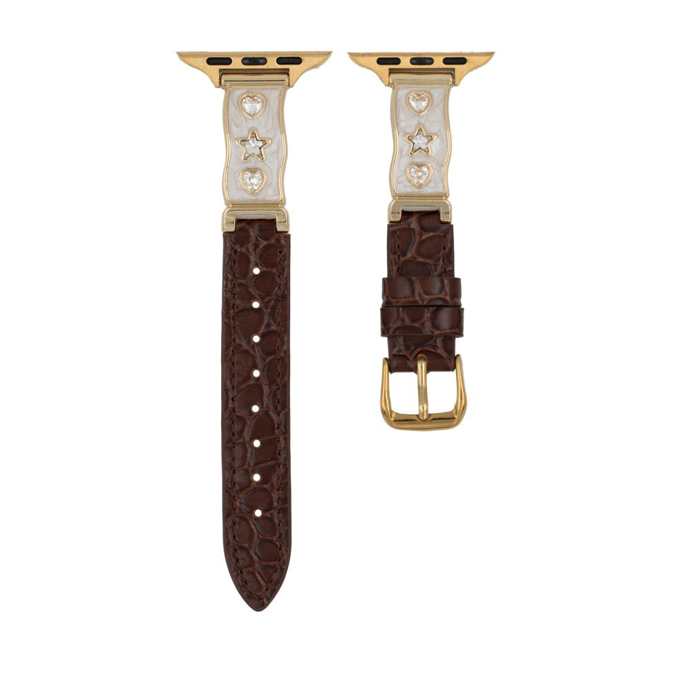 Bracelet de montre Apple Watch Series 1-9 49 mm - 45 mm - 44 mm - 42 mm Bracelet en cuir de vachette véritable avec décor en zircon - Marron