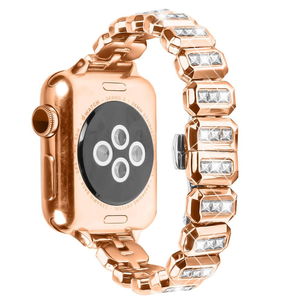 Bracelet métallique Apple Watch Series 1-9 49 mm - 45 mm - 44 mm - 42 mm Décoration en strass avec fermoir papillon - Or Rose