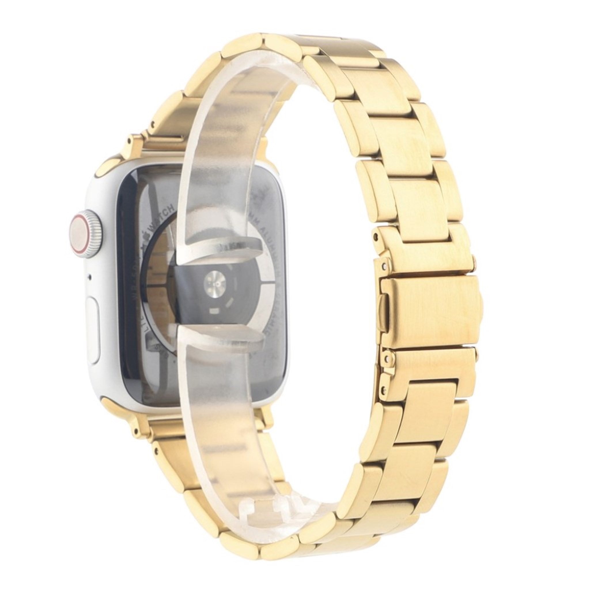 Bracelet métallique Apple Watch Series 1-9 49 mm - 45 mm - 44 mm - 42 mm Décoration en strass avec fermoir papillon - Or