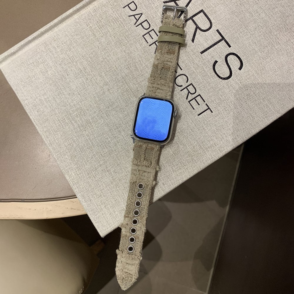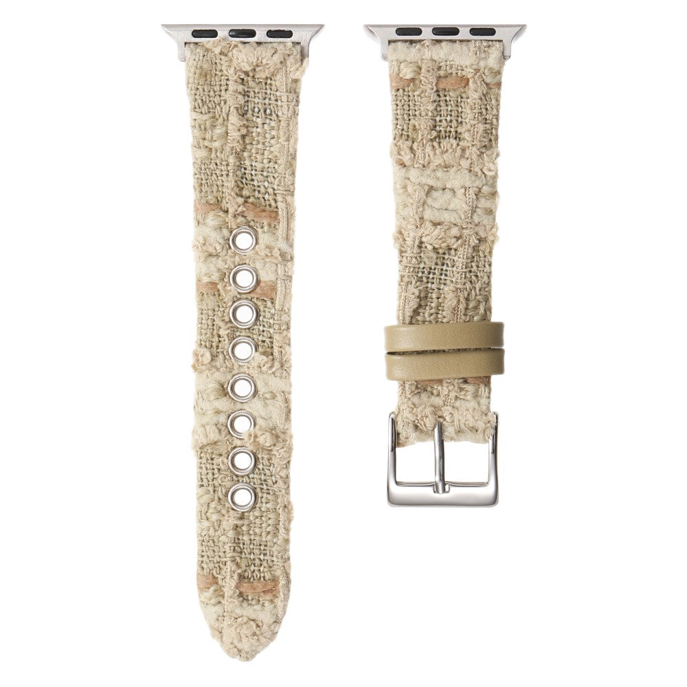 Bracelet en cuir de vachette véritable et laine Apple Watch Series 10 46mm - Châtaigne