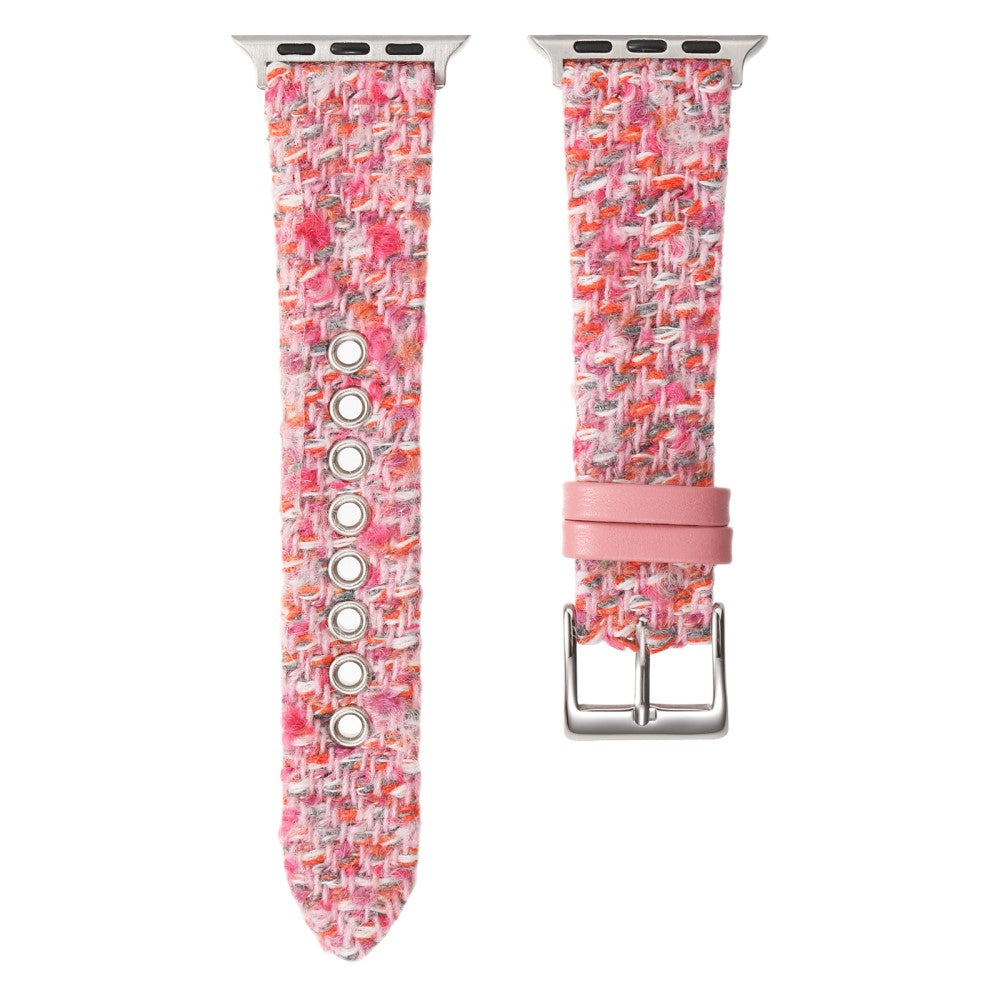 Bracelet en cuir de vachette véritable et laine Apple Watch Series 10 46mm bracelet d'hiver - Rose