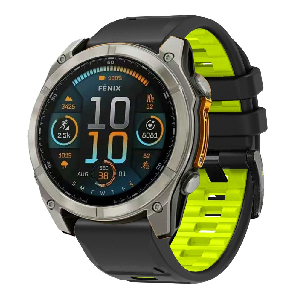 Bracelet 22mm Garmin Fenix 8 47mm / Tactix 8 47mm / Quatix 7 Pro / Descent G2 , Bracelet silicone bicolore à attache rapide - Lime + Black