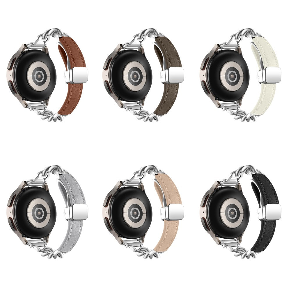 Samsung Galaxy Watch6 / Garmin Venu Sq 2 Bracelet magnétique 20mm en cuir de vachette véritable - Marron