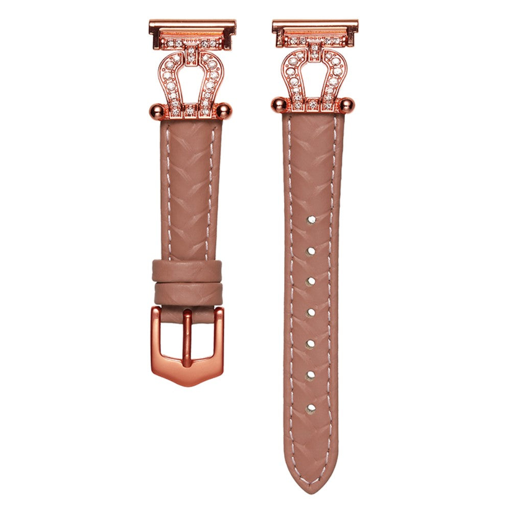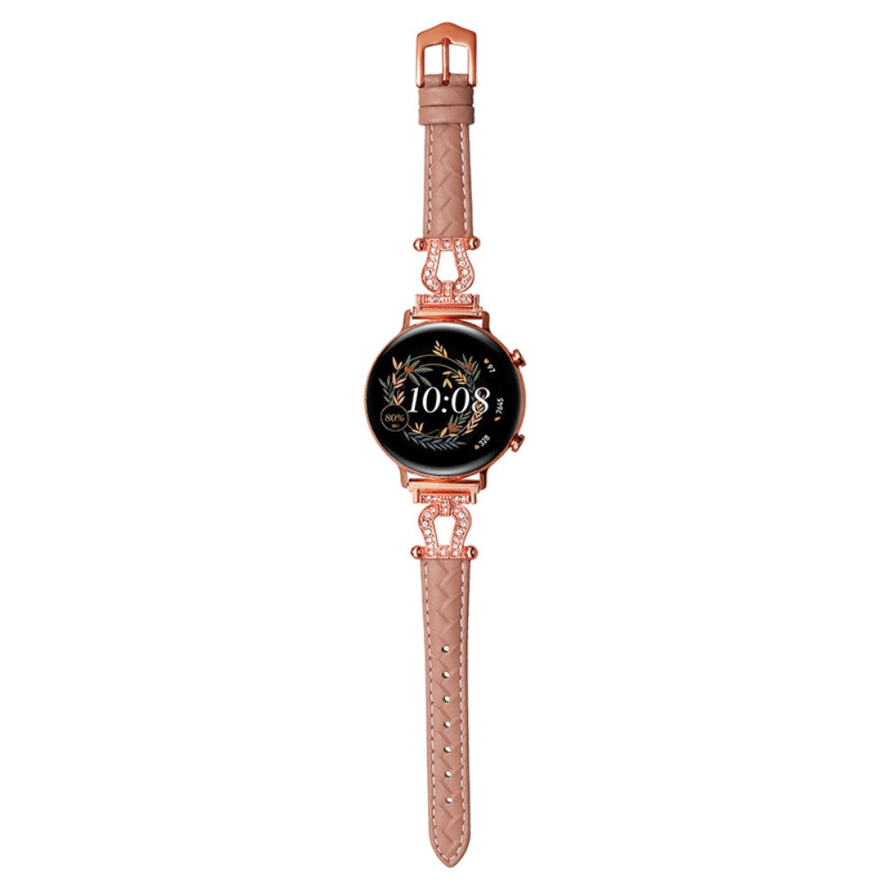 Samsung Galaxy Watch6 Classic 47mm 43mm / GarminActive 5 Watch Strap 20mm U-shape Cowhide Leather Band - Bean Pink / Rose Gold Buckle Buckle
