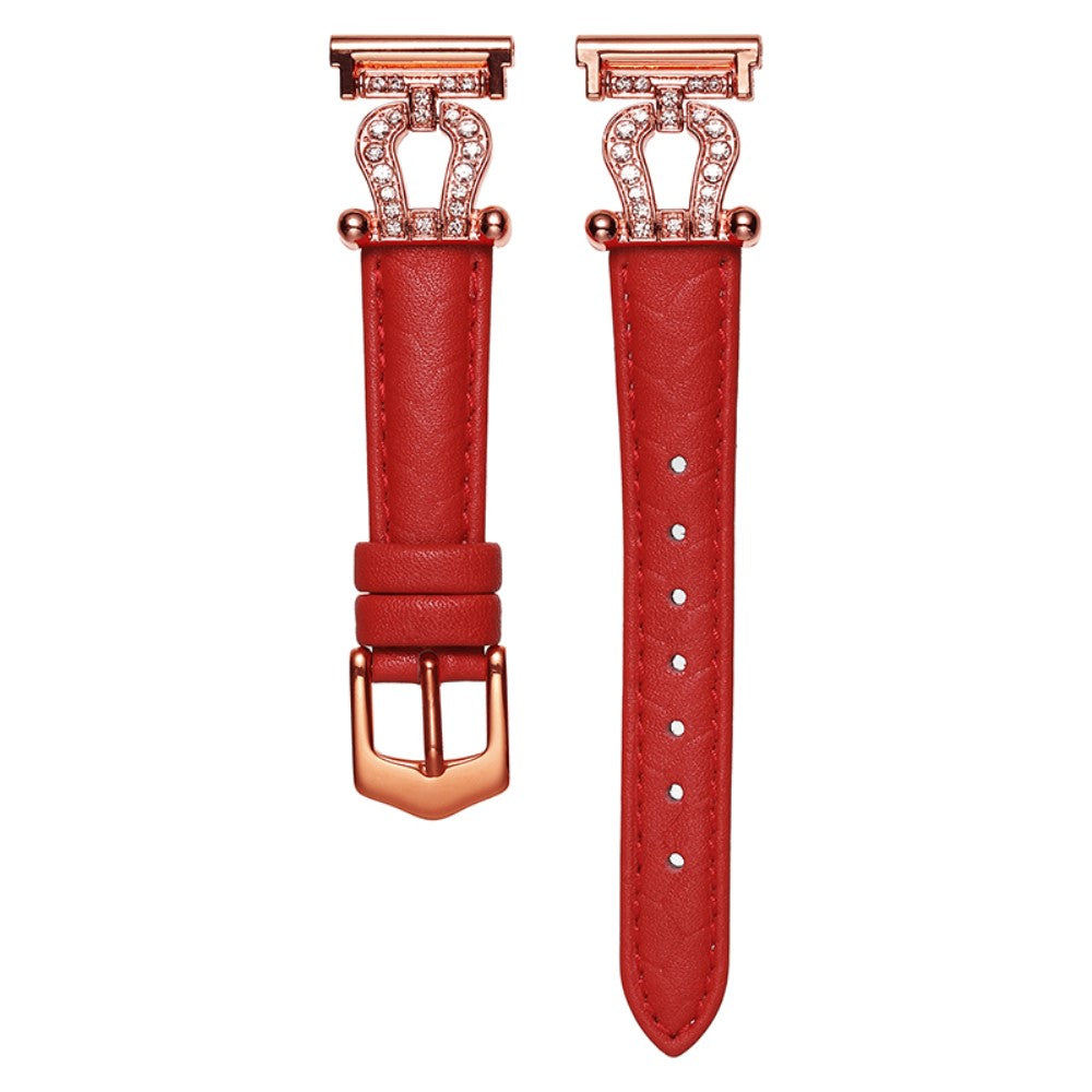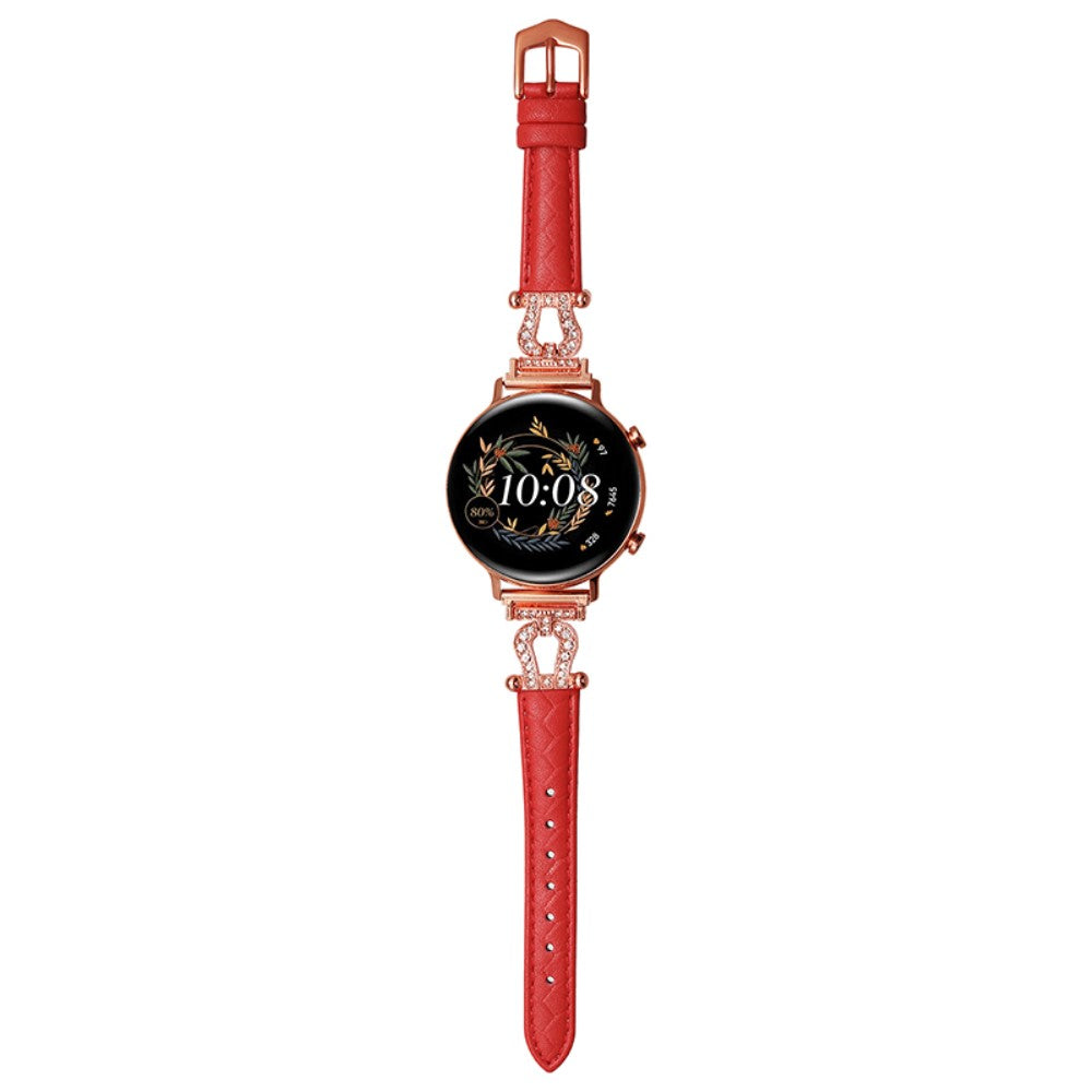 Samsung Galaxy Watch6 Classic 47mm 43mm / GarminActive 5 Watch Strap 20mm U-shape Cowhide Leather Band - Red / Rose Gold Buckle Buckle