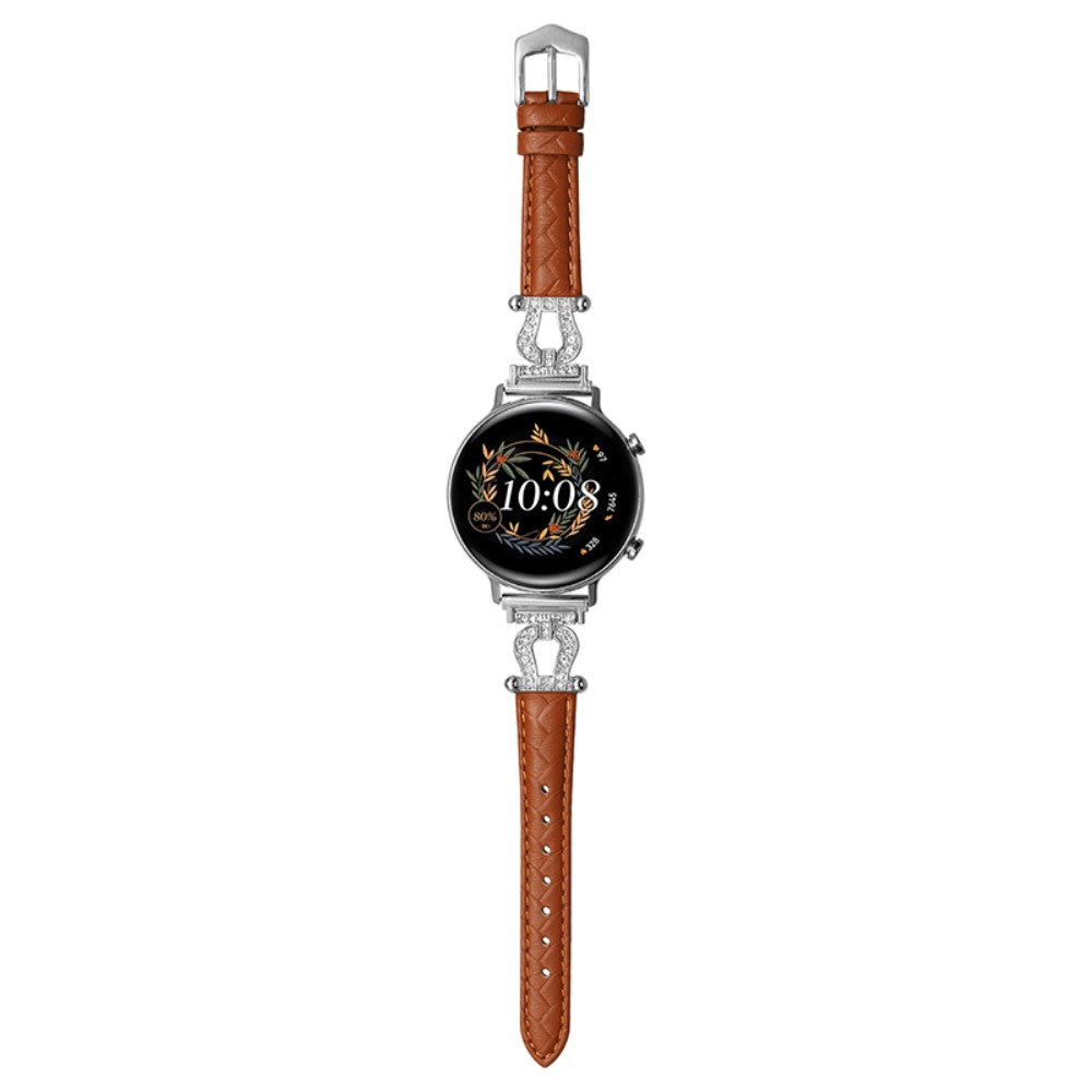 Samsung Galaxy Watch6 Classic 47mm 43mm / GarminActive 5 Watch Strap 20mm U-shape Cowhide Leather Band - Dark Brown / Silver Buckle Buckle