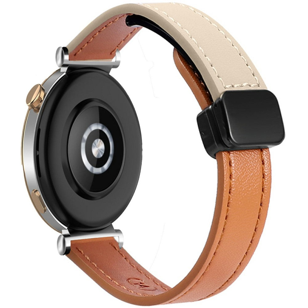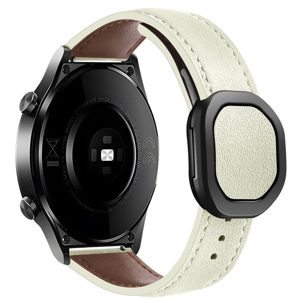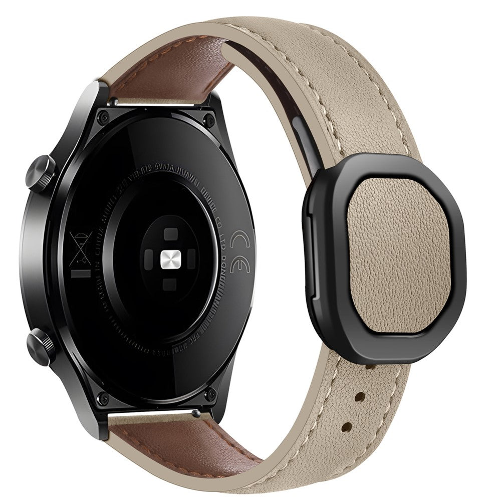 KALEBOL Huawei Watch Strap 22mm Nautilus Magnetic Buckle Genuine Cow Leather Band - Beige