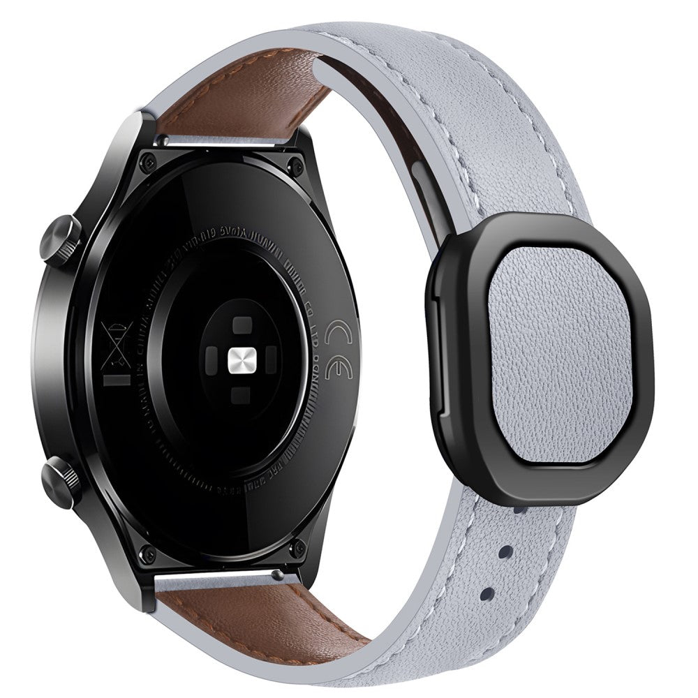 KALEBOL Huawei Watch Strap 22mm Nautilus Magnetic Buckle Genuine Cow Leather Band - Light Grey