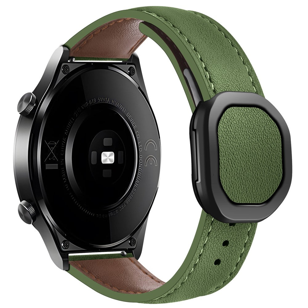 KALEBOL Huawei Watch Strap 22mm Nautilus Magnetic Buckle Genuine Cow Leather Band - Army Green