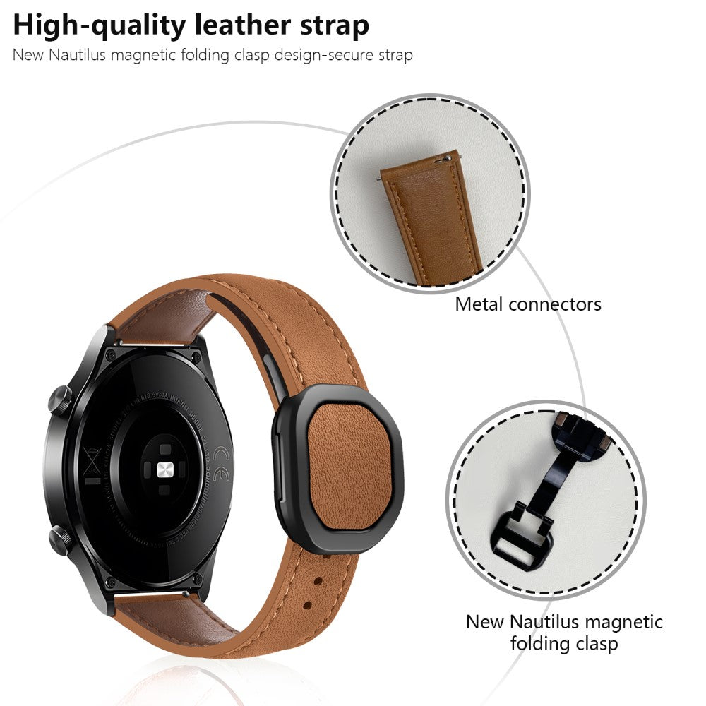 KALEBOL Huawei Watch Strap 22mm Nautilus Magnetic Buckle Genuine Cow Leather Band - Brown