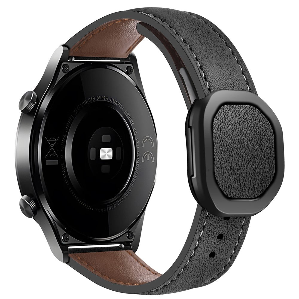 KALEBOL Huawei Watch Strap 22mm Nautilus Magnetic Buckle Genuine Cow Leather Band - Black
