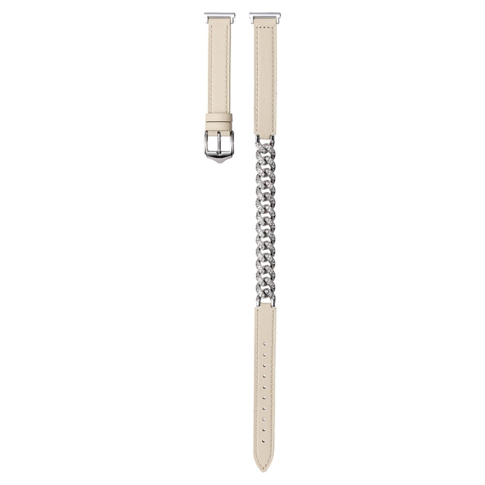 22mm Universal Smart Watch Band Bling Rhinestone Genuine Cow Leather and Chain Strap Replacement - White