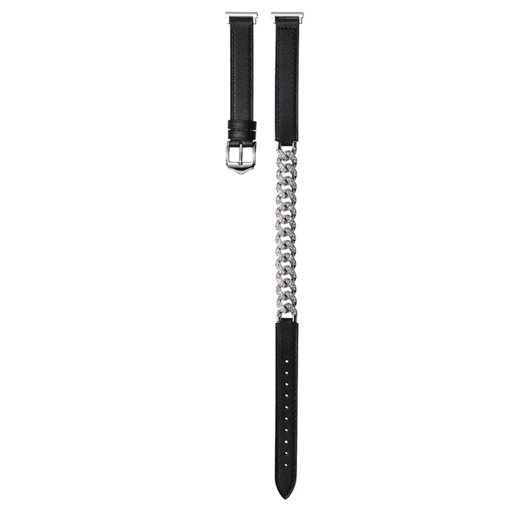 22mm Universal Smart Watch Band Bling Rhinestone Genuine Cow Leather and Chain Strap Replacement - Noir