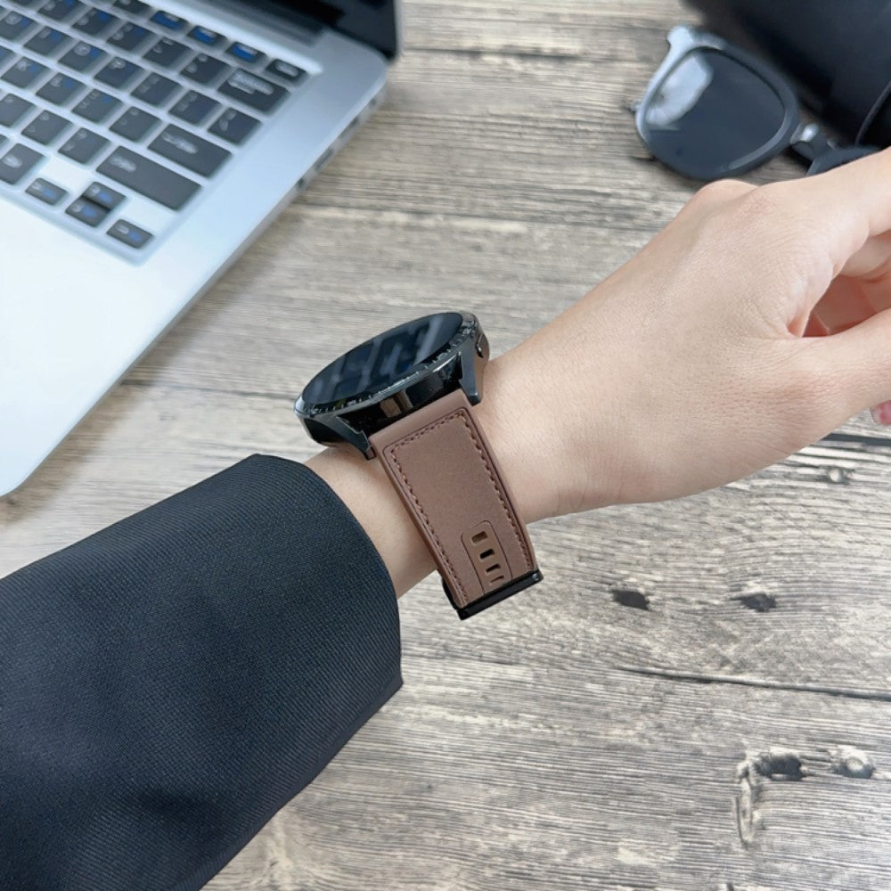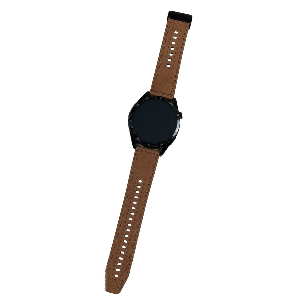 Samsung Galaxy Watch3 45mm / Huawei Watch GT 4 46mm Bracelet montre 22mm en cuir de vachette véritable - Marron