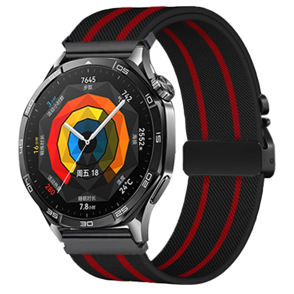 KALEBOL Bracelet pour montre connectée Huawei Samsung 22 mm à rayures et boucle parachute en nylon - Noir / Rayures Rouges