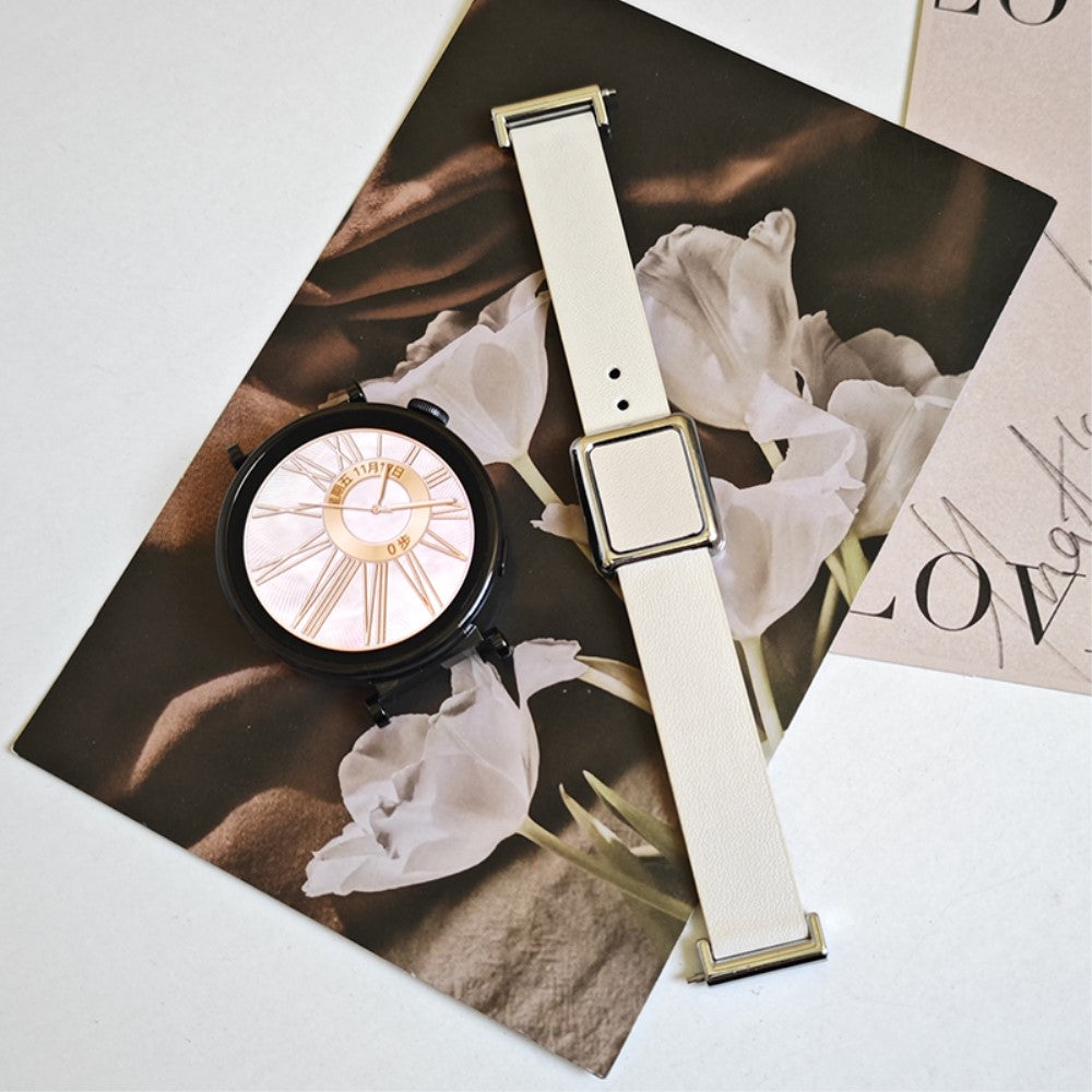 18mm Universal Smart Watch Band Leather Strap Replacement with Square Buckle - Beige