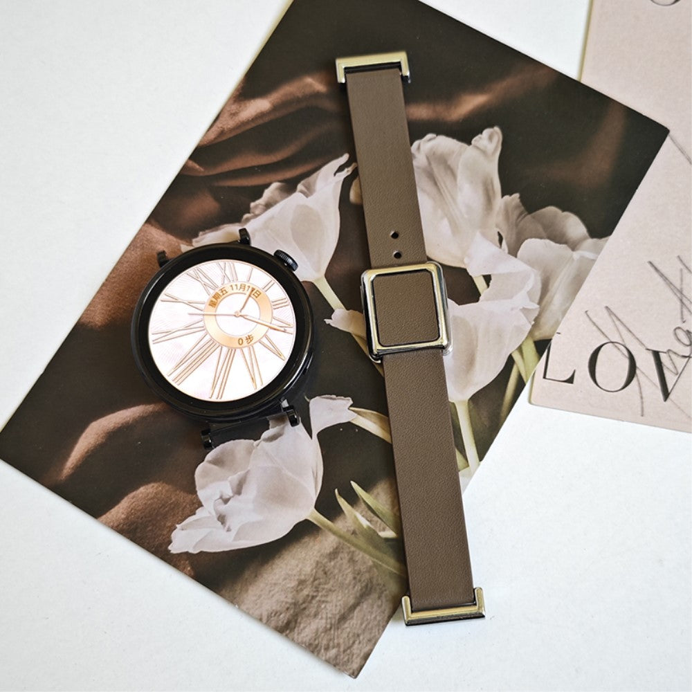 18mm Universal Smart Watch Band Leather Strap Replacement with Square Buckle - Taupe