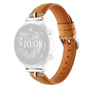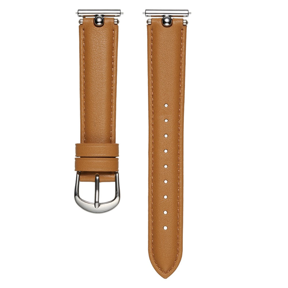 20mm Universal Smart Watch Band Genuine Cow Leather Strap Replacement - Khaki+Silver Buckle Buckle