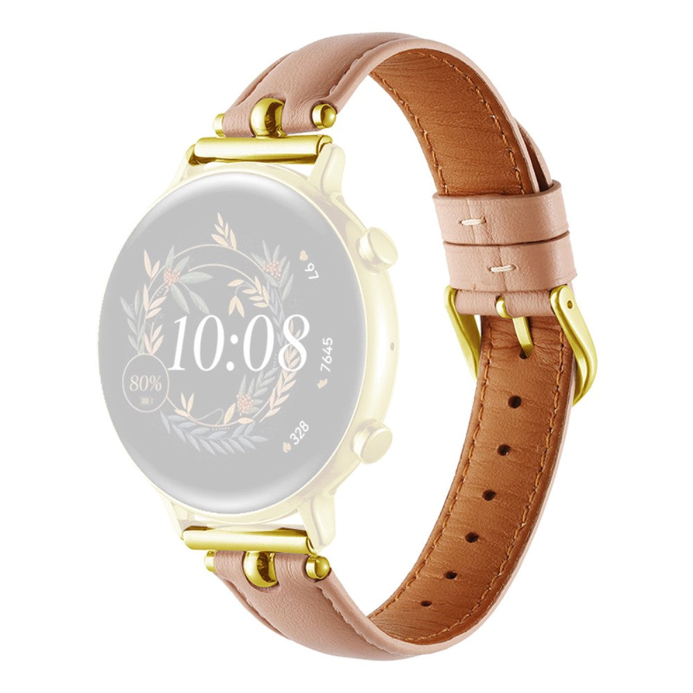 20mm Universal Smart Watch Band Genuine Cow Leather Strap Replacement - Light Pink+Gold Buckle Buckle