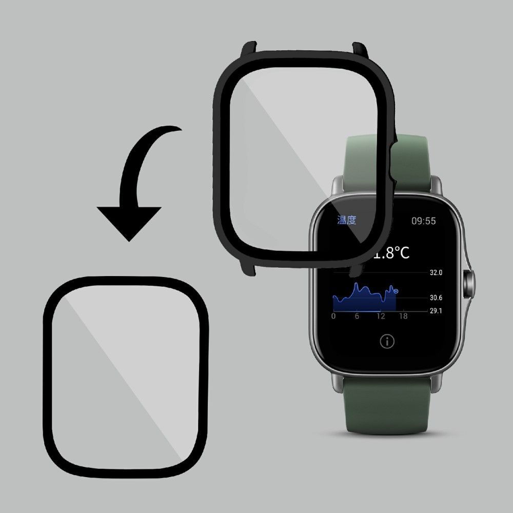 Amazfit GTS 2 housse de protection + verre trempé HD - Noir