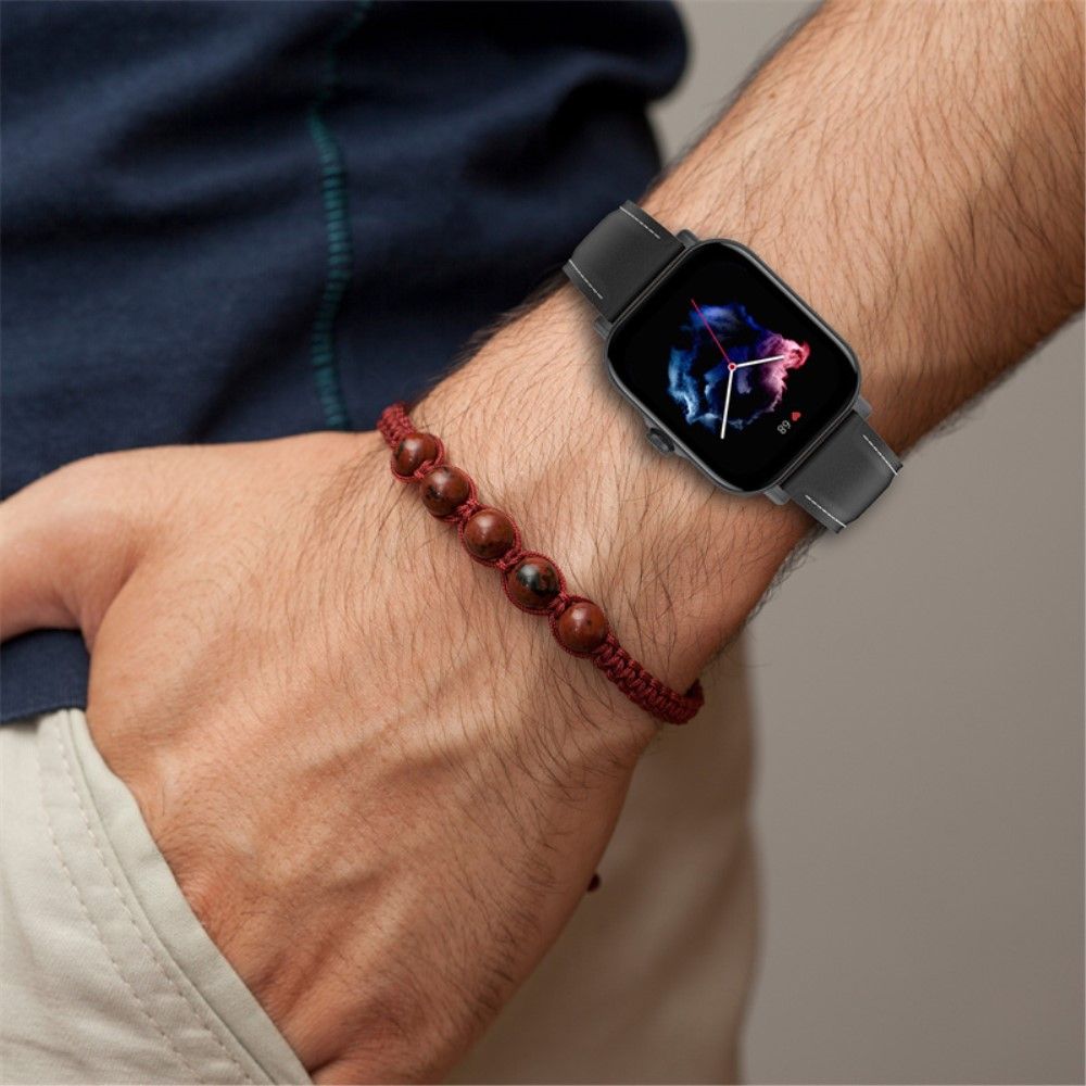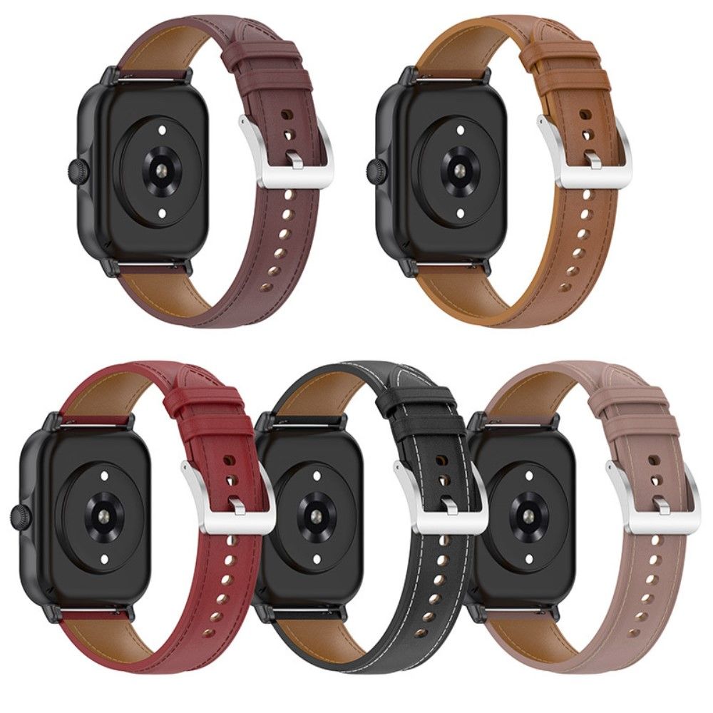For Huami Amazfit GTS3/Amazfit Bip U Replacement Smart Watch Strap Top Layer Cowhide Adjustable Wrist Band - Black