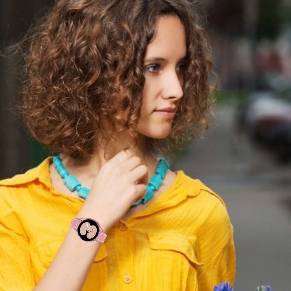 For Huami Amazfit Bip 1S/Amazfit GTR 42mm/GTS/Bip Lite Cowhide Leather Watch Strap Universal Wrist Band Replacement Watchband - Pink