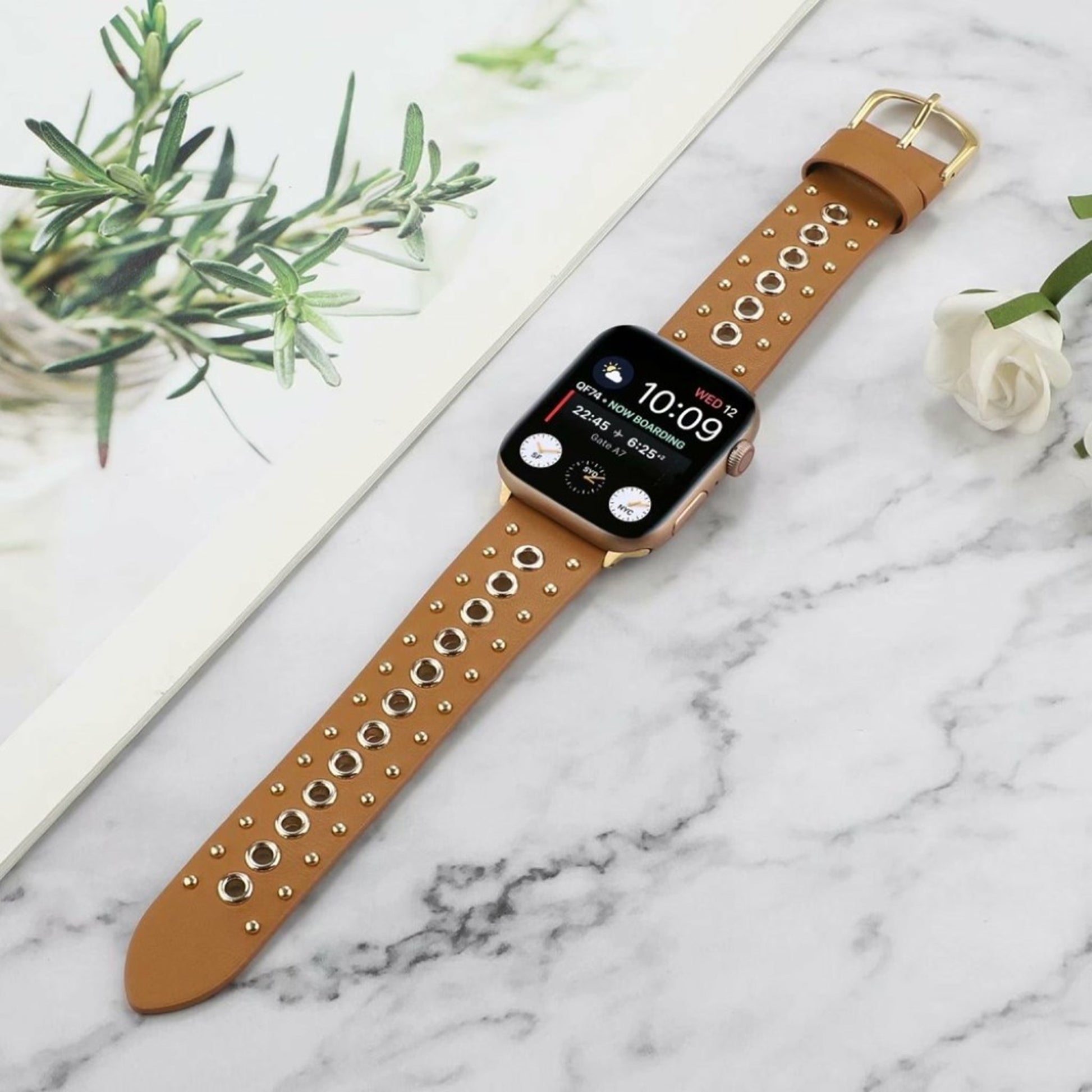Apple Watch Series 6 / 5 40mm rivet punk bracelet de montre en cuir véritable - Marron