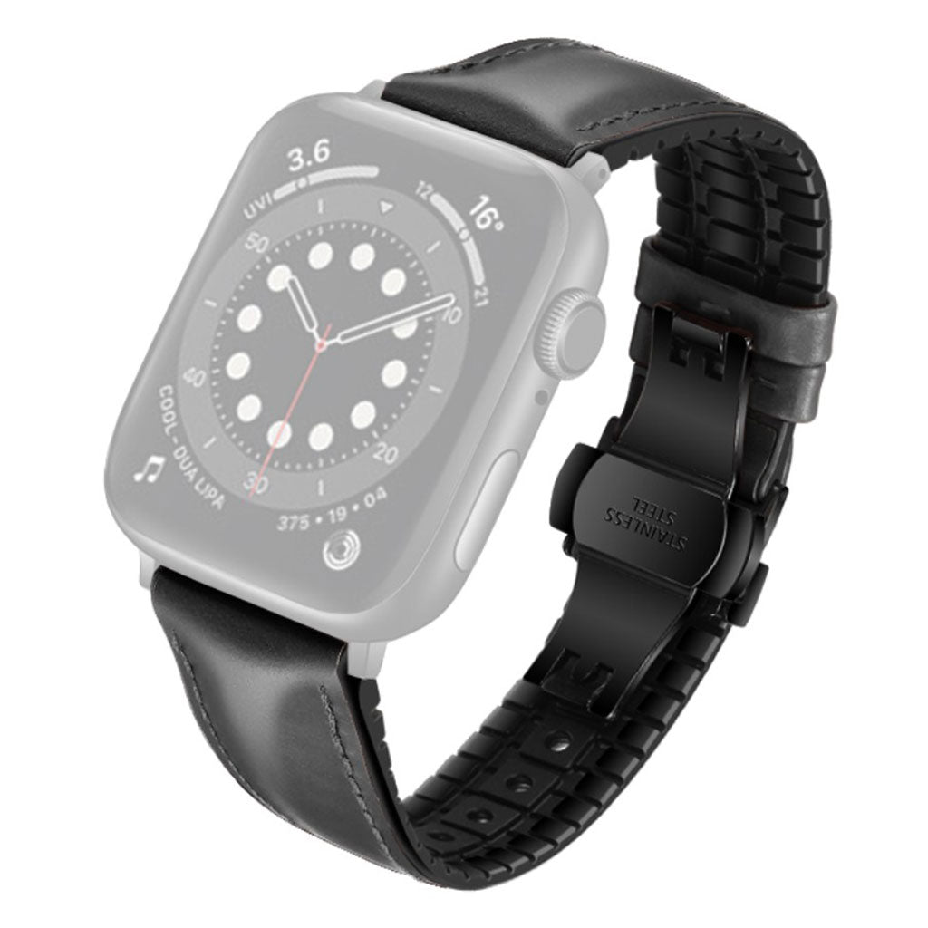Apple Watch Series 6 / 5 44mm bracelet cuir confortable - Tout Noir