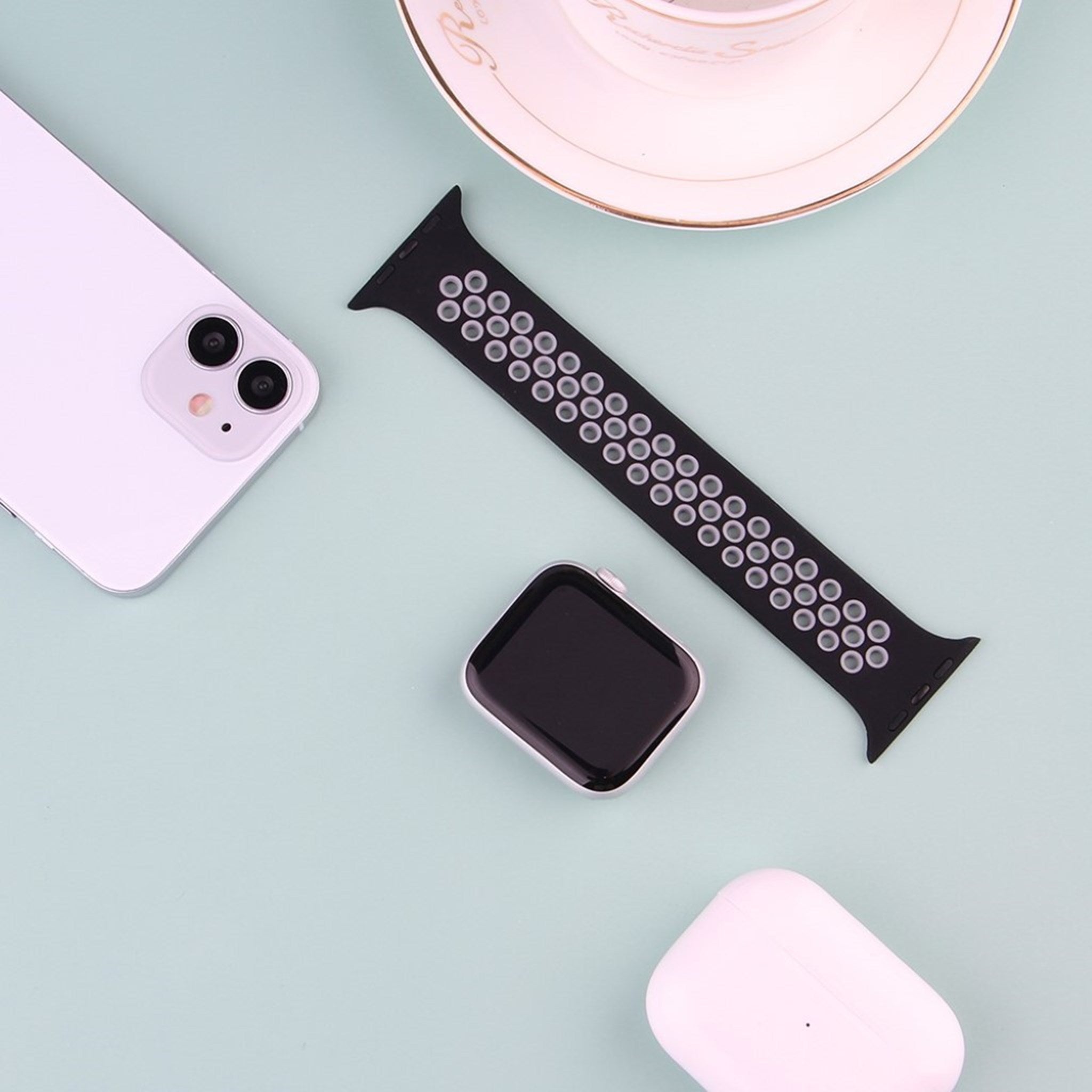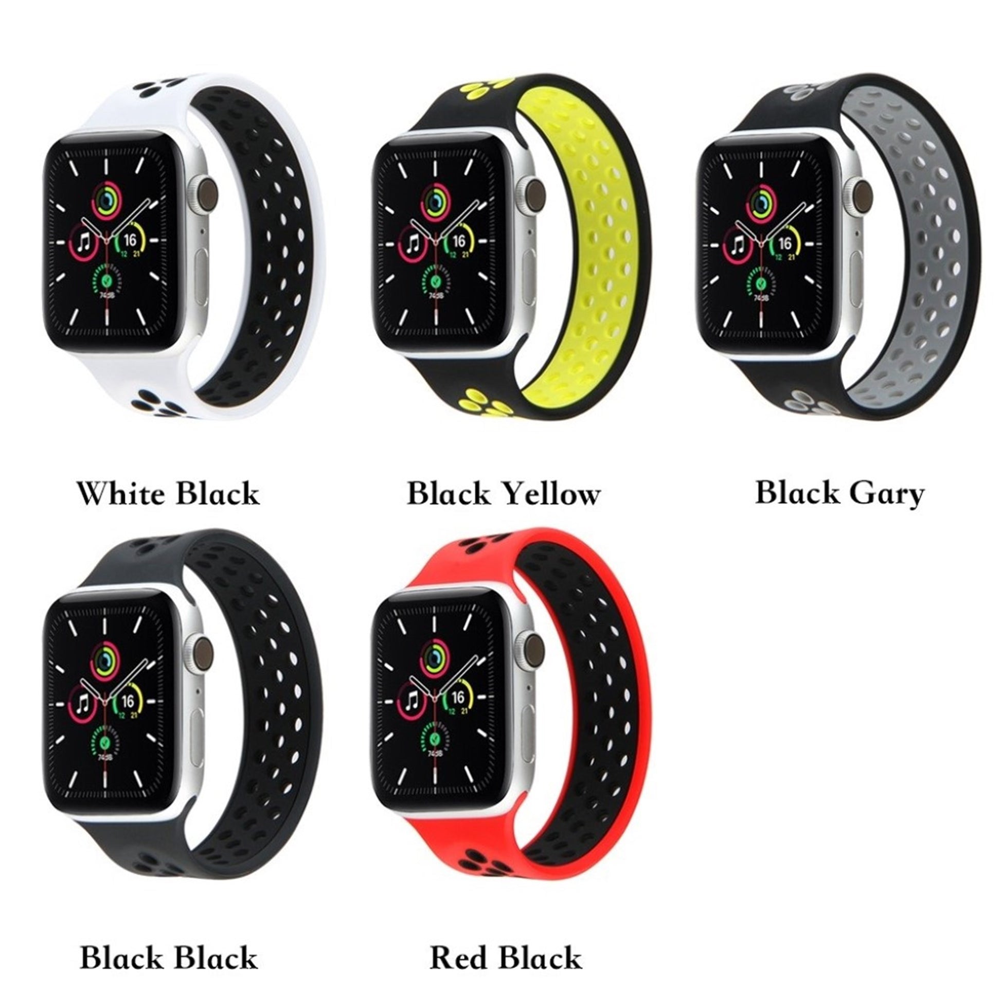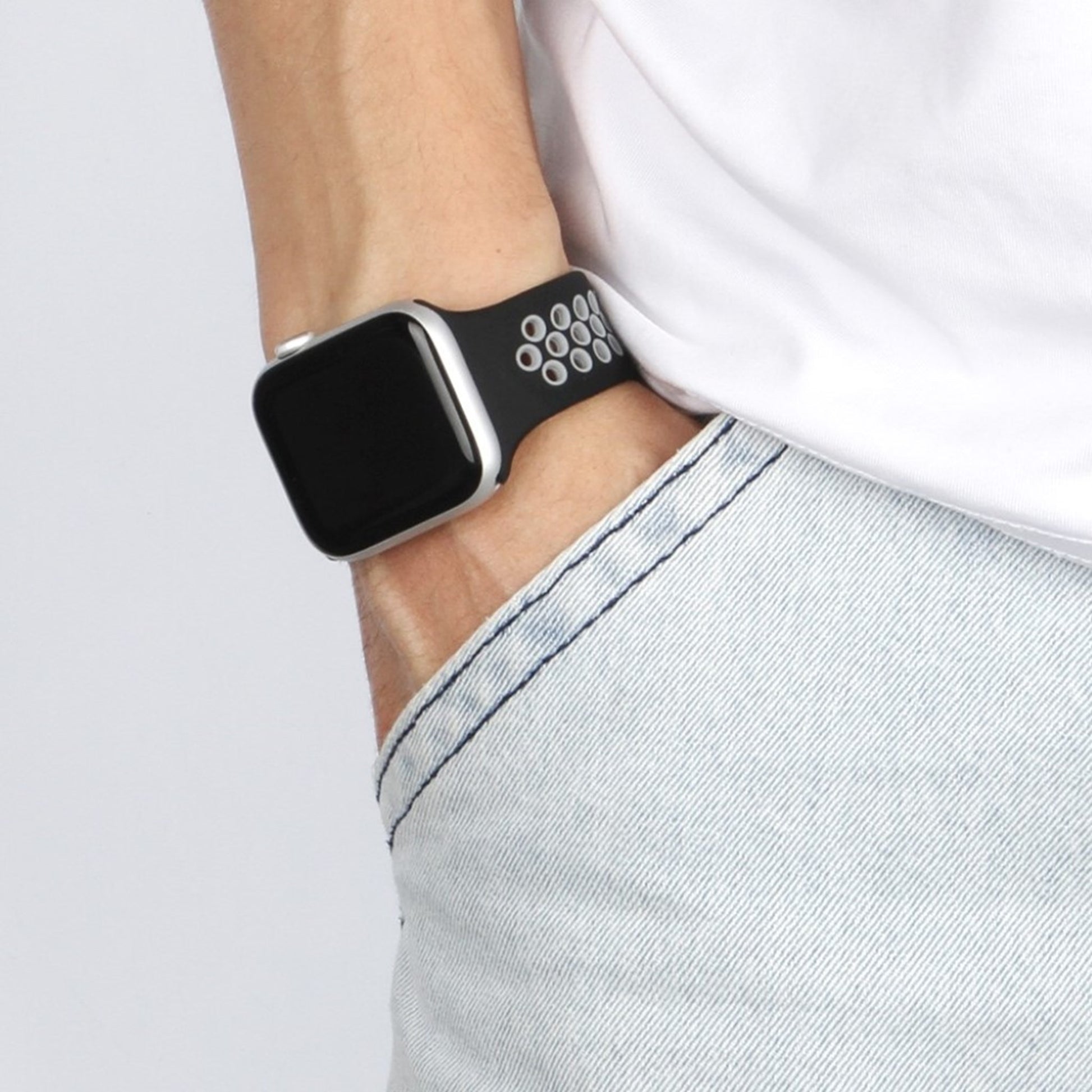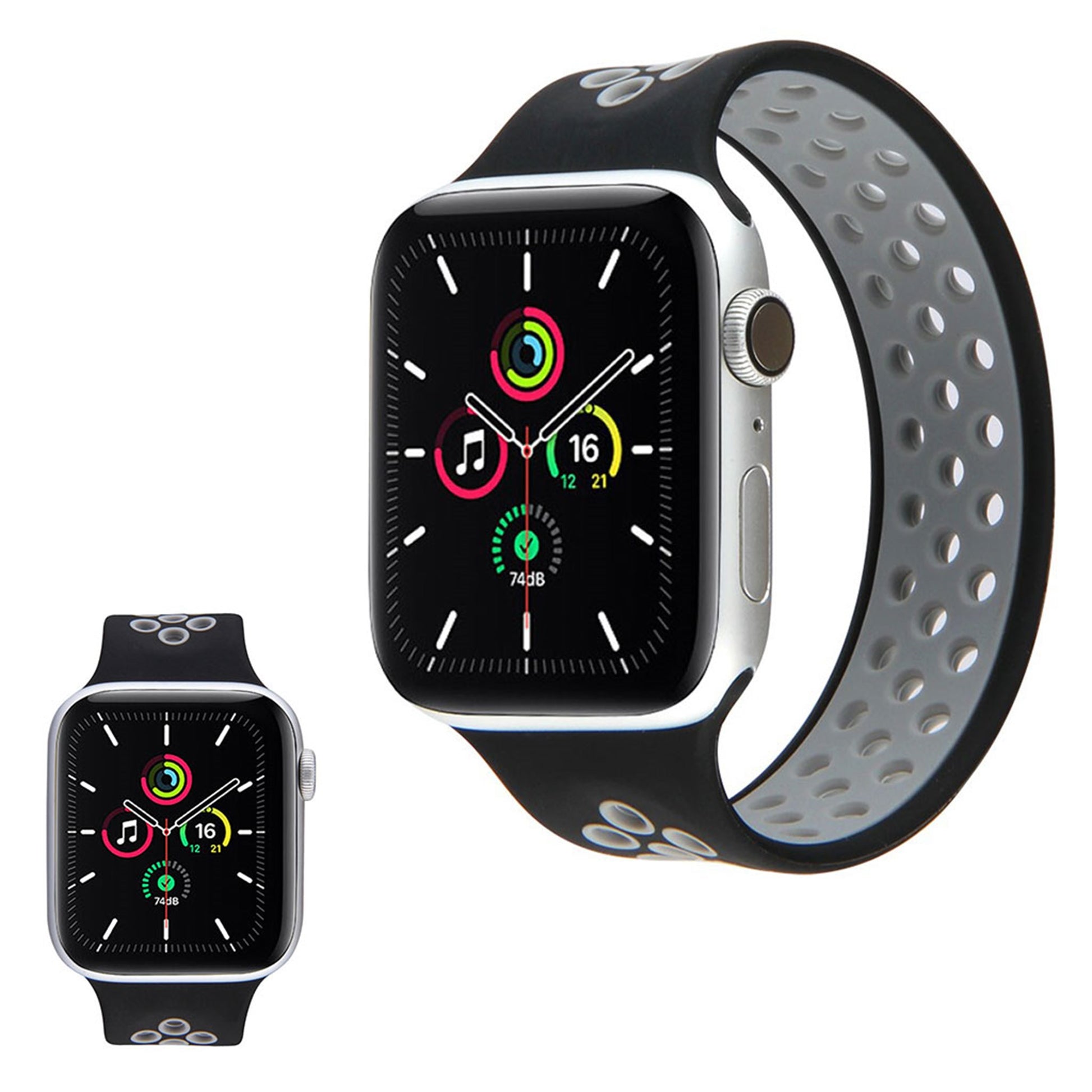 Apple Watch Series 6 / 5 44mm dual color silicone watch band - Noir / Gris / Taille : S