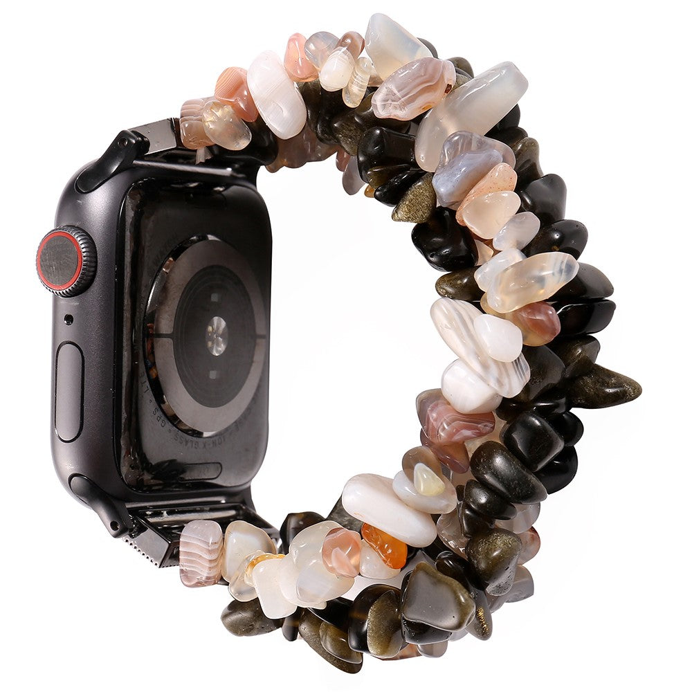 Cette bandeau de montre est confectionné à partir de pierres naturelles, mettant en valeur la beauté authentique de la nature. Sa surface lisse offre un confort optimal, évitant toute irritation sur la peau ou rayures sur le poignet. Composée de quatre rangées de pierres, soigneusement assemblées par des cableons, elle se distingue par son élégante conception qui saura compléter votre style. Ce bracelet est la solution idéale pour remplacer un ancien modèle endommagé, tout en apportant une touche de sophistication à votre montre connectée. Disponible dans divers styles, il répond à des besoins variés, permettant ainsi à chacun de trouver l'option parfaite. Adapté pour les modèles de montres spécifiques, sa longueur est modulée pour convenir à des poignets de taille intermédiaire. Un accessoire à la fois esthétique et fonctionnel pour rehausser votre expérience d'utilisation.