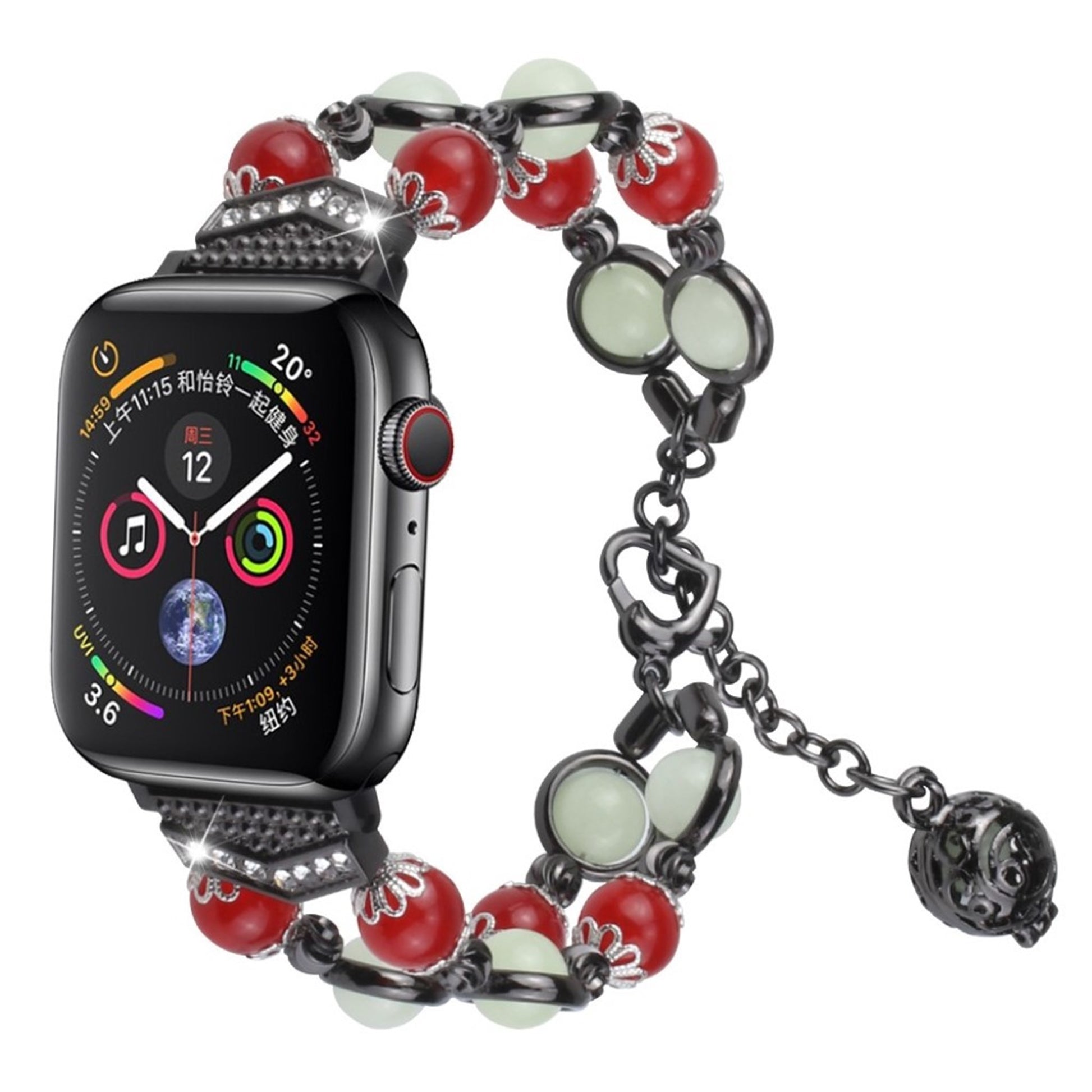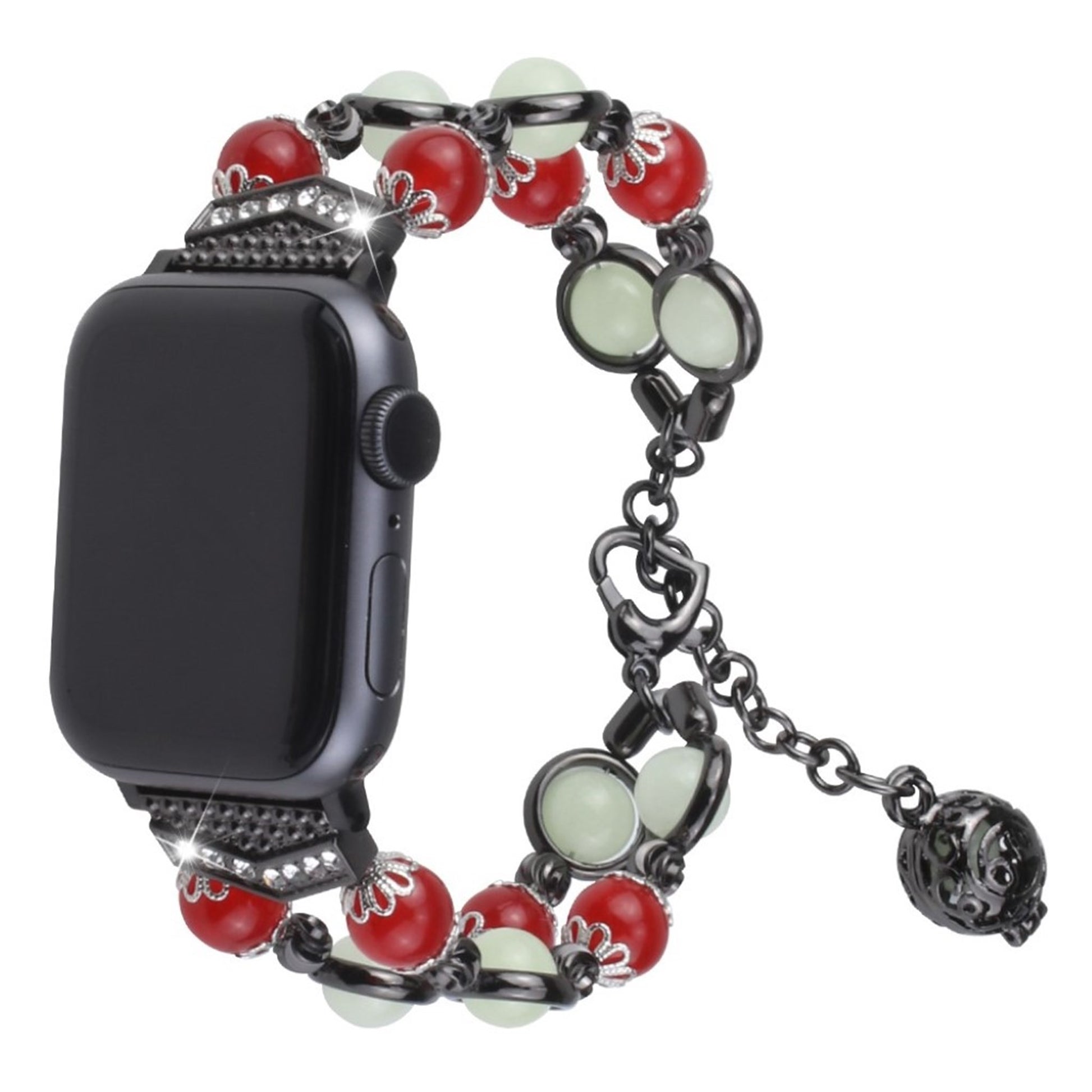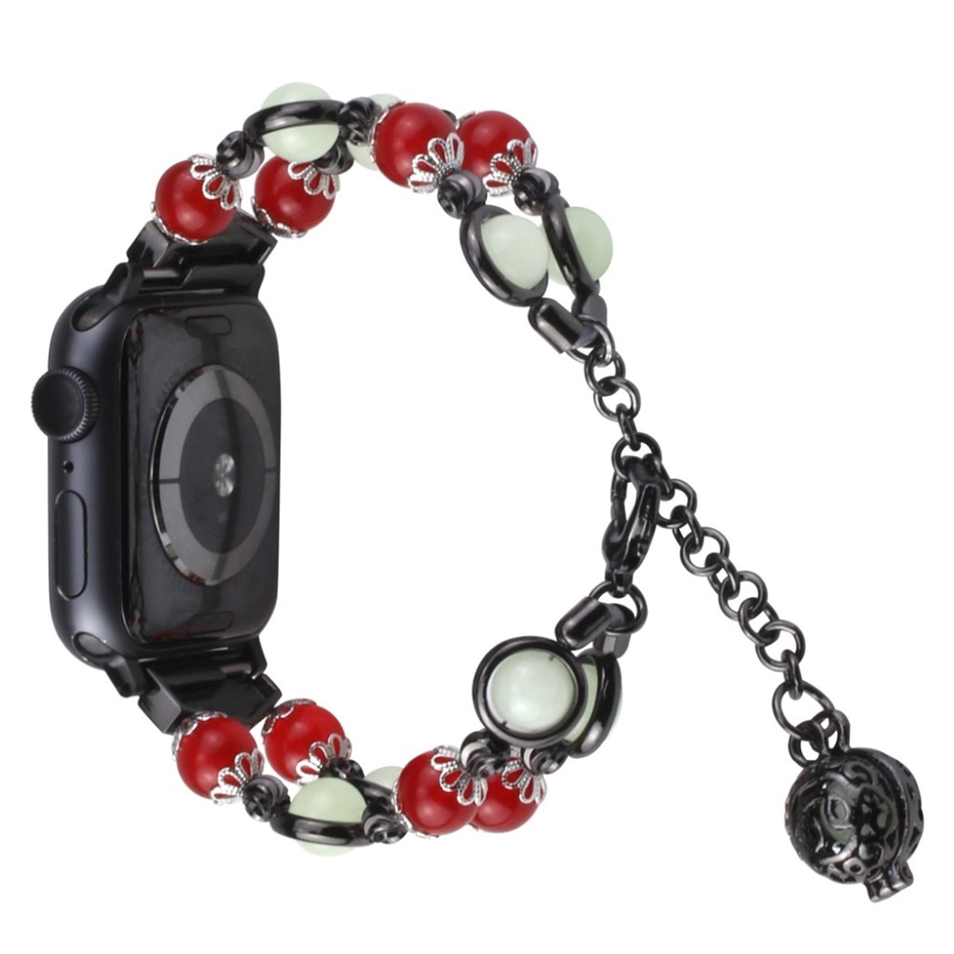 Bracelet de montre en acier inoxydable à perles lumineuses pour Apple Watch Series 6 / 5 44mm - Rouge / Noir